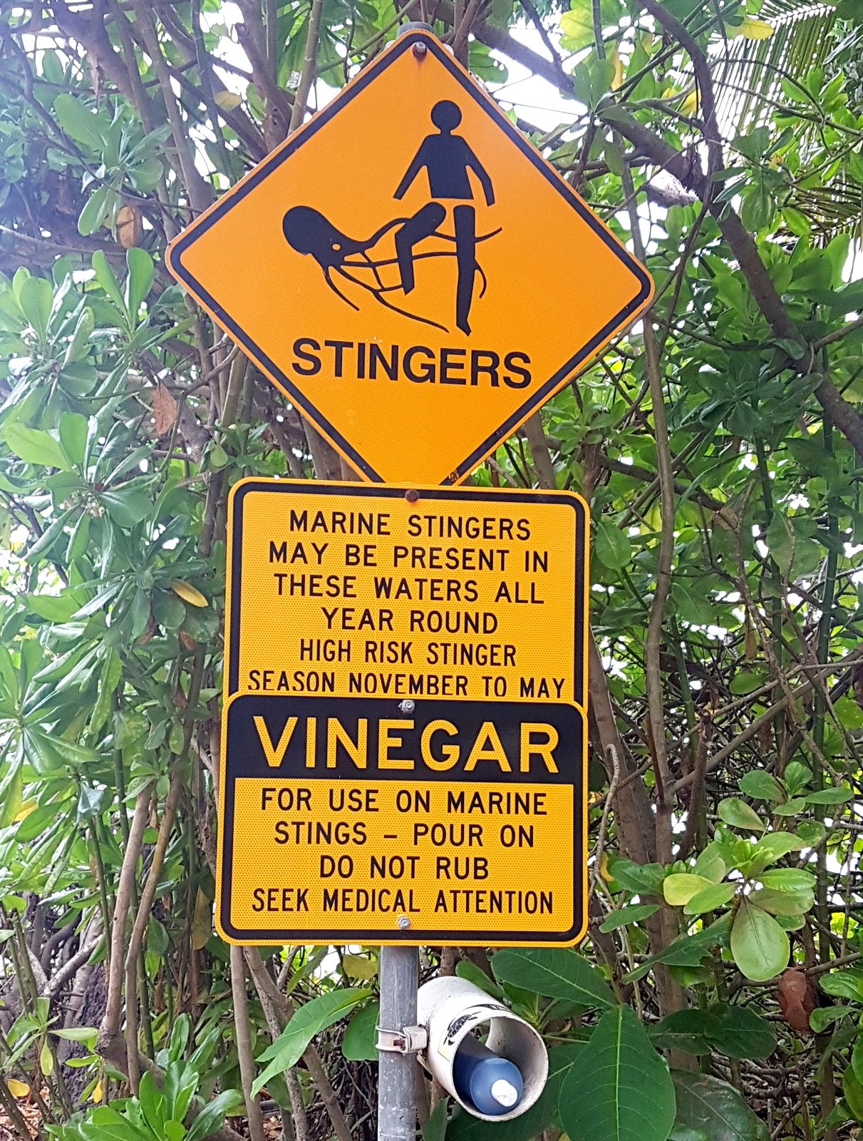 Pourtant si la plage est sublime, l’eau chaude (28°C !!!), on ne peut malheureusement pas s’y baigner à cause des méduses qui pullulent dans les eaux entre novembre et mars de Gladstone à Townsville et d’octobre à juin dans le nord de Gladstone !!! Les seules solutions sont de se baigner à l’intérieur des filets de protection qui sont installés ou porter une combinaison de protection qui pourra également servir de protection contre les UV…Elle vous sera même indispensable si vous désirez faire du snorkeling sur la grande barrière à cette période…