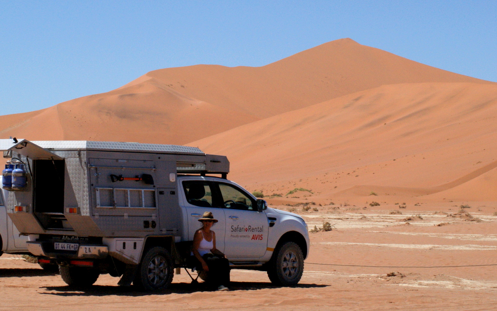 Il y a donc un 1er parking pour les voitures de tourisme et eux qui n’osent pas s’aventurer même avec leur 4X4 !!! De là, un tracteur attelé d’une remorque emmènent les gens jusqu’au bout. Ça coûte 110NAD (environ 7,50€) en espèces par personne aller/retour. Pas vraiment d’horaires, il part quand il est plein.