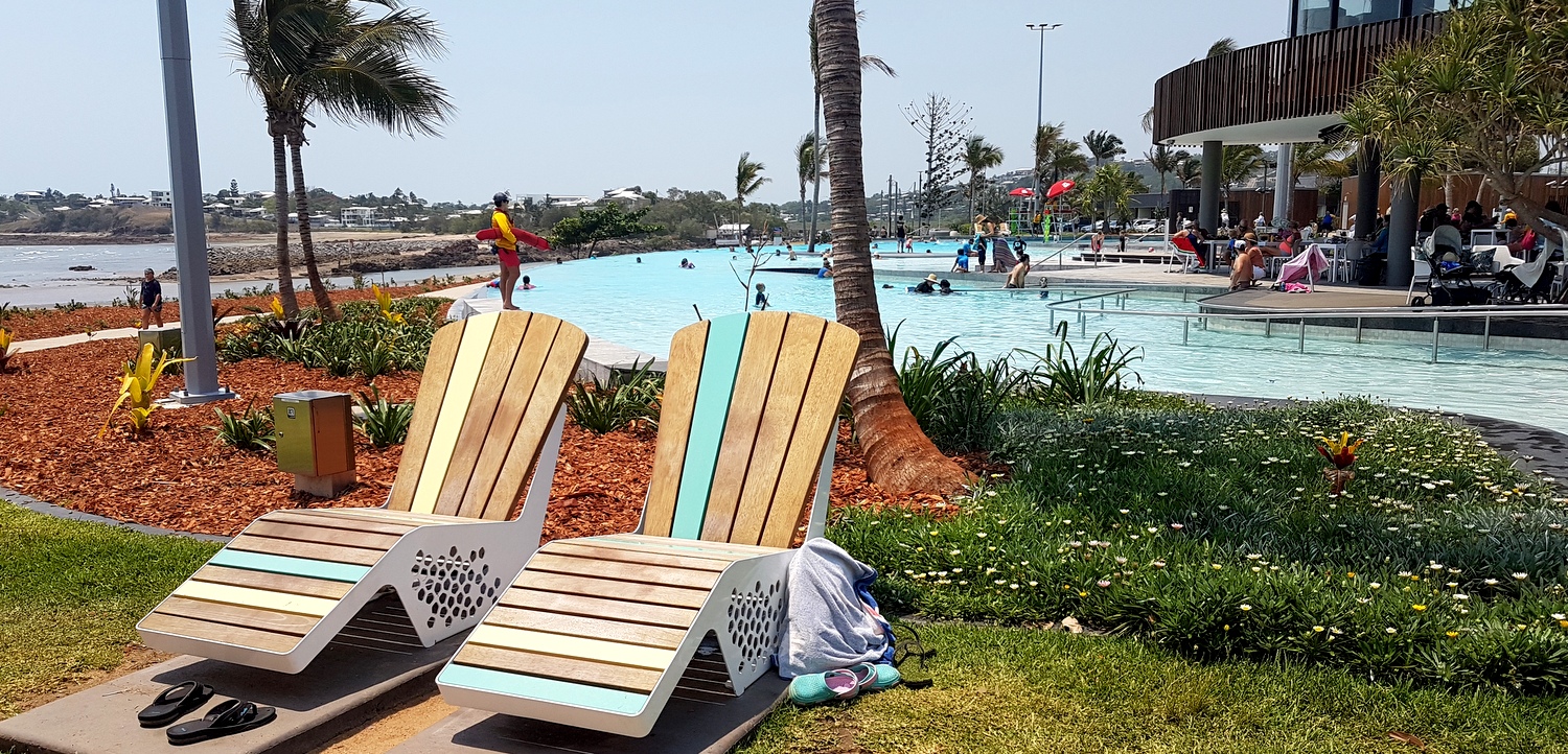 – sur les côtés du Yeppoon Surf Life Saving Club où Simon McLean a créé des dessins sur le thème du sauvetage en mer…
