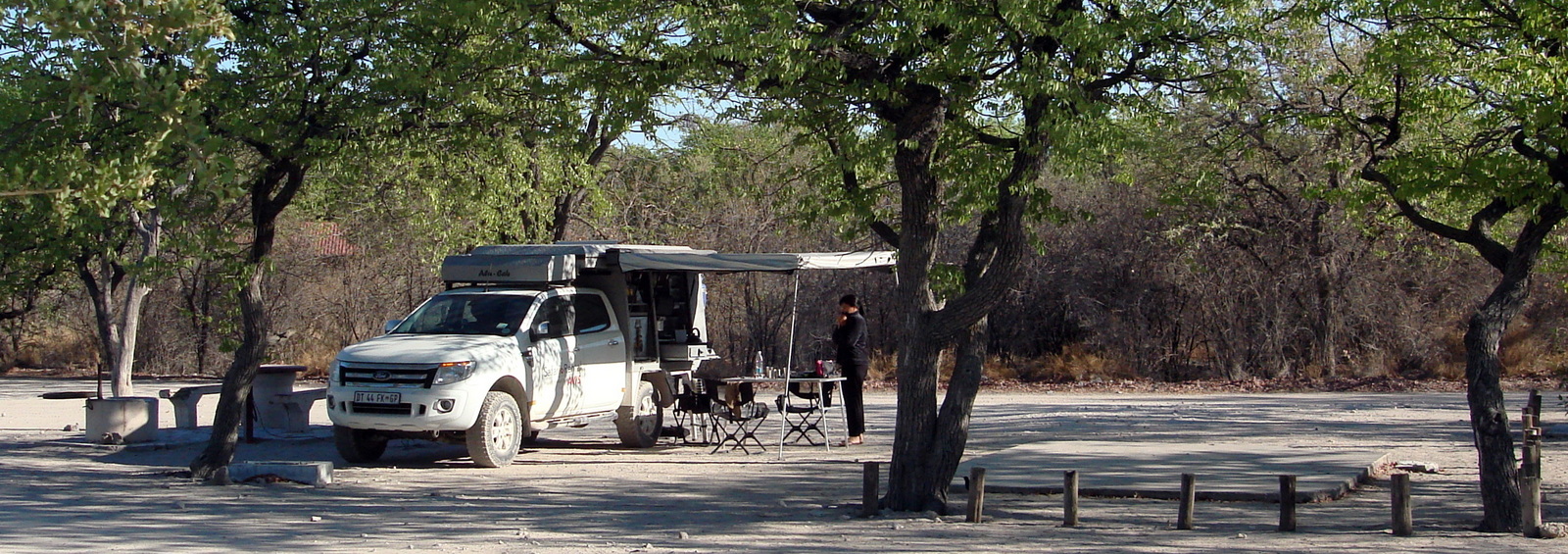 Le camp d’HALALI est sûrement celui qui a le moins de charme. Il y a si peu de visiteurs qu’on nous laisse choisir notre emplacement sur place dans le camp. On le choisit sous un arbre avec un salon bâti et un braï (ils ne l’ont pas tous…)