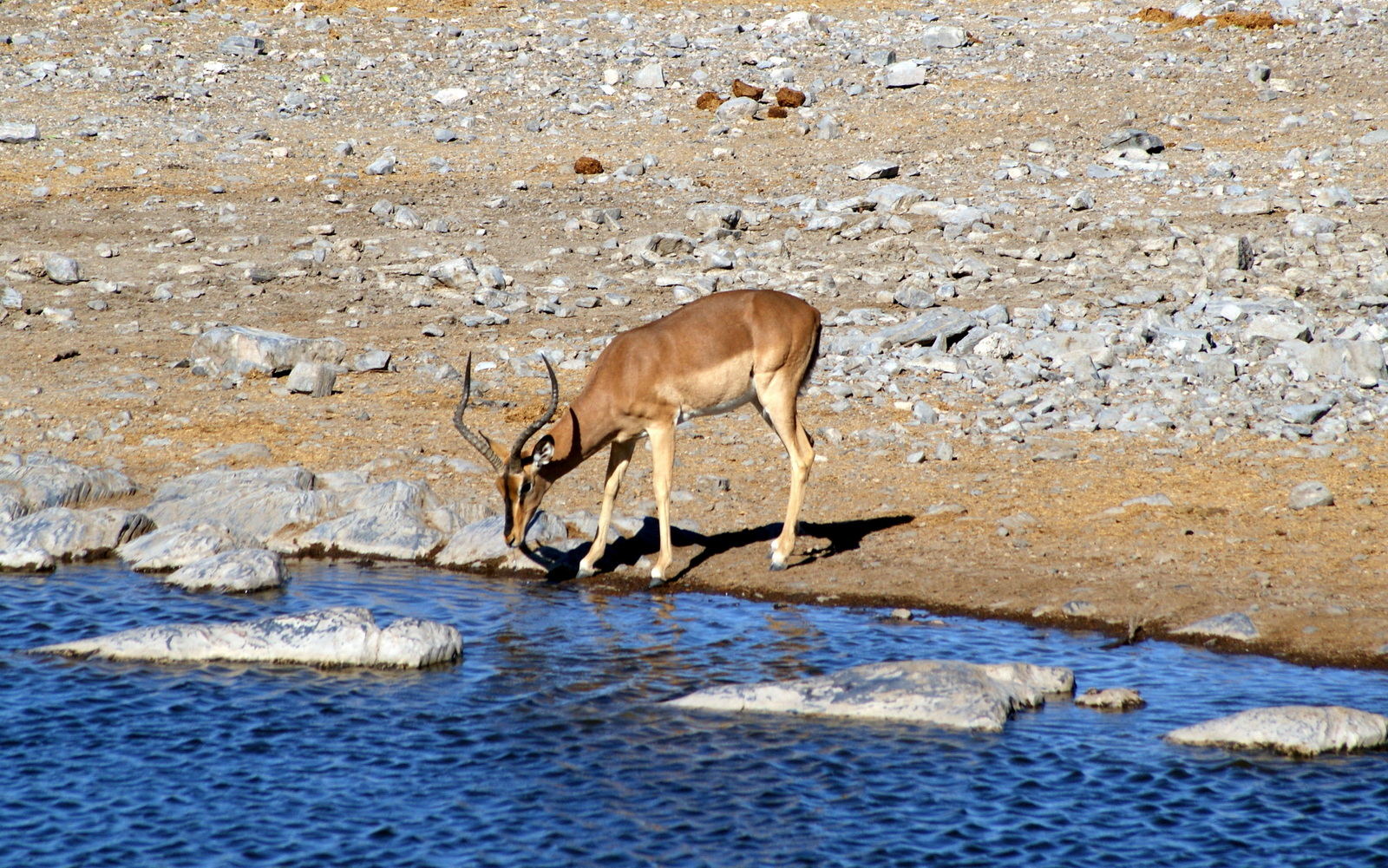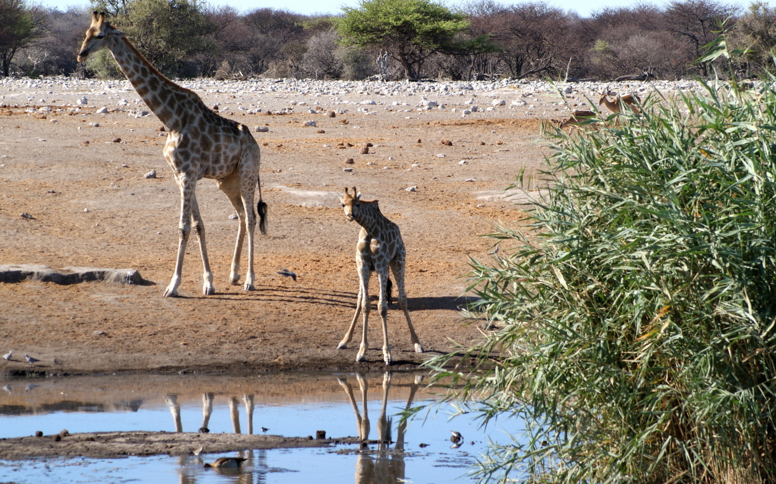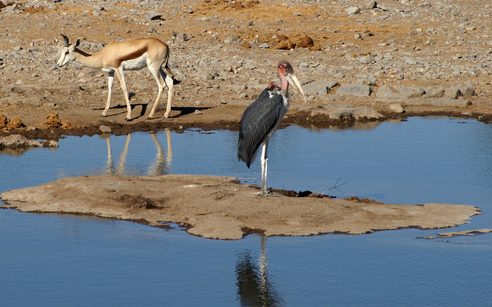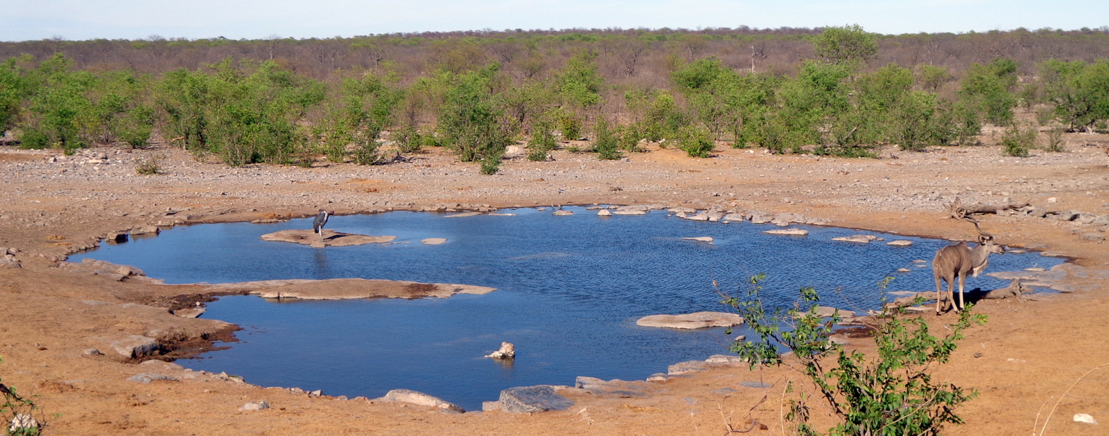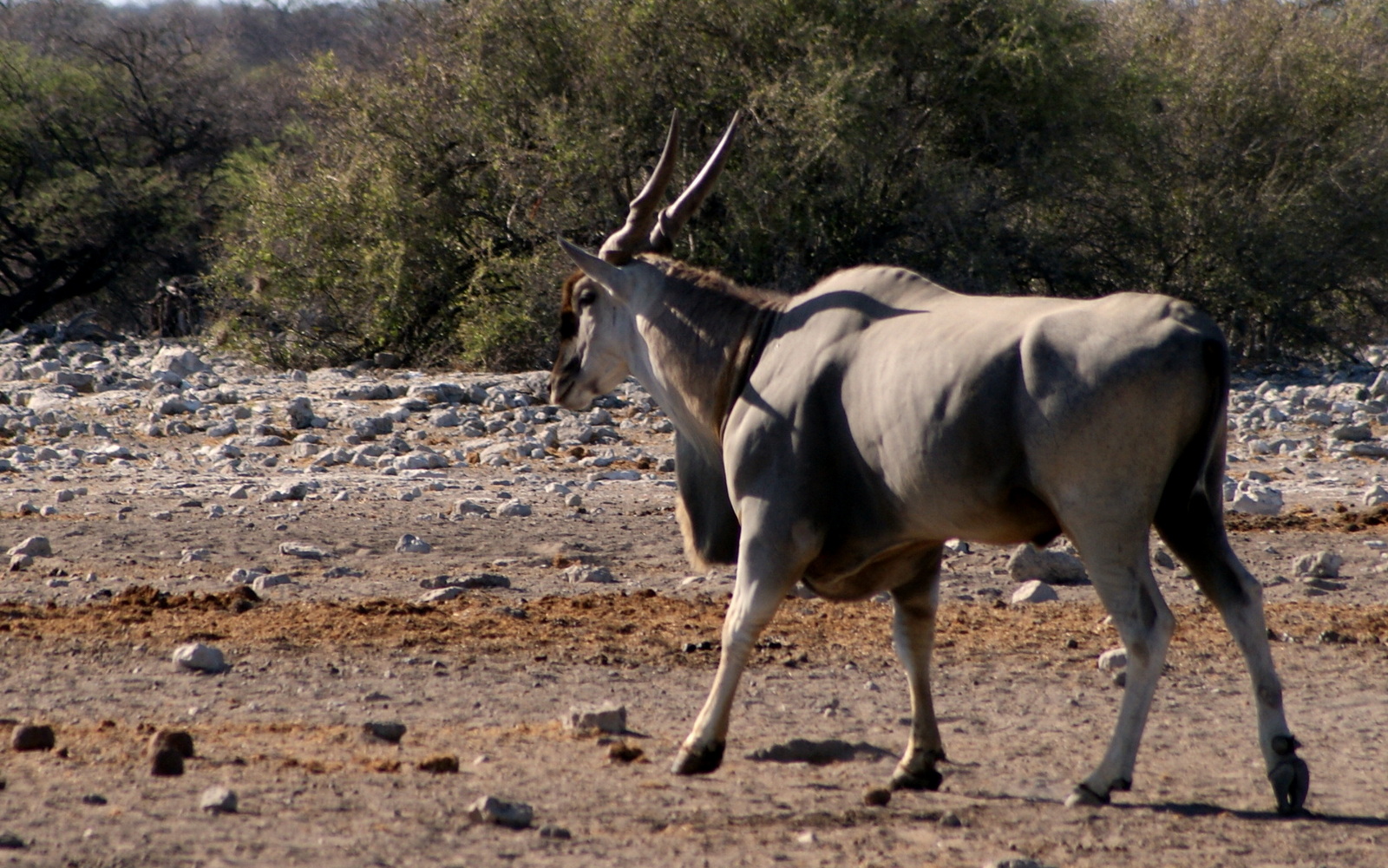 Les points d’eau sont très beaux également et très fréquentés. On y croise un immense troupeau de zèbres et le seul élan du Cap (la plus grande des antilopes) de notre séjour en Namibie.