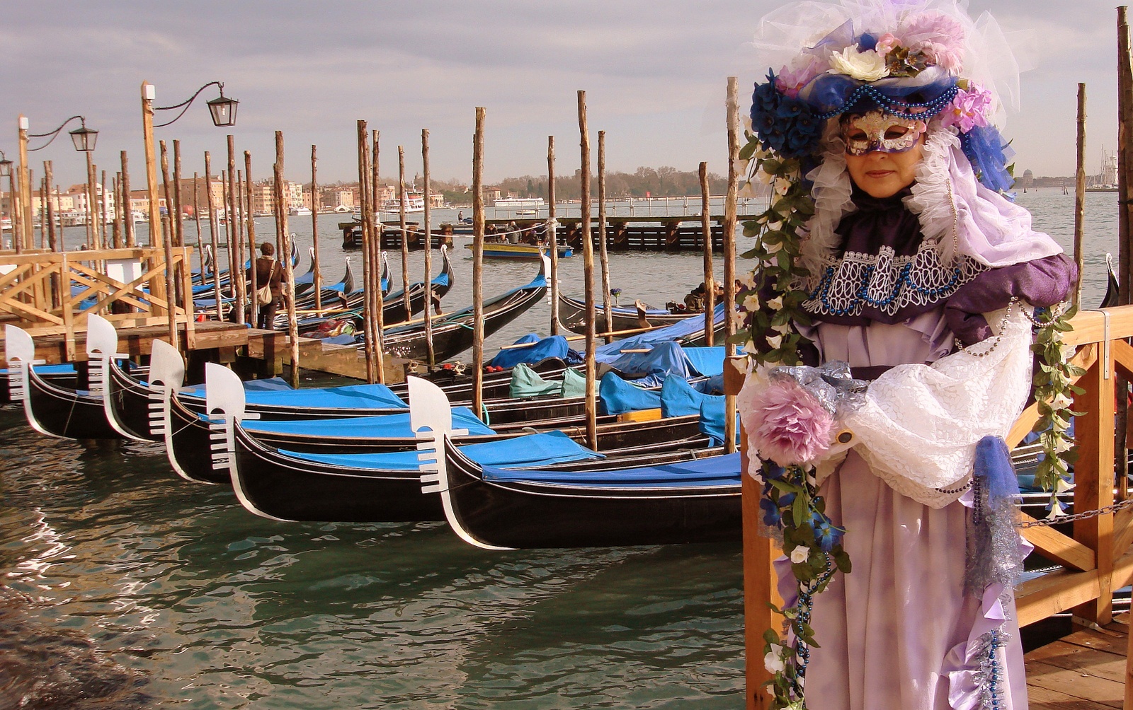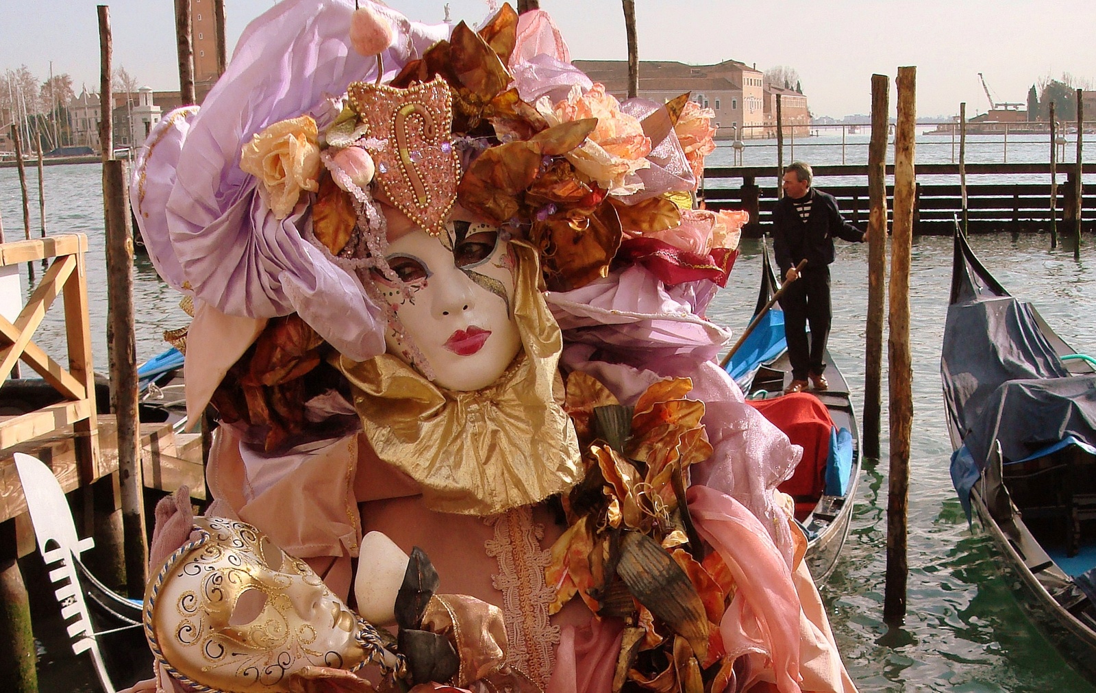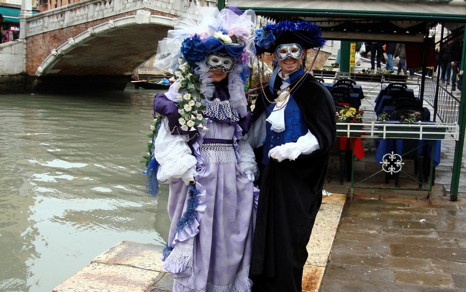 On a beau être loin de la place San Marco (le centre névralgique du Carnaval), on est vite repérés par les photographes amateurs ou non et comme il n’y a pas beaucoup de costumés dans le coin, ils nous tombent dessus comme « la misère sur le pauvre monde »! J’ai paniqué… J’ai vraiment eu la sensation que doit avoir une biche le jour de l’ouverture de la chasse !!!