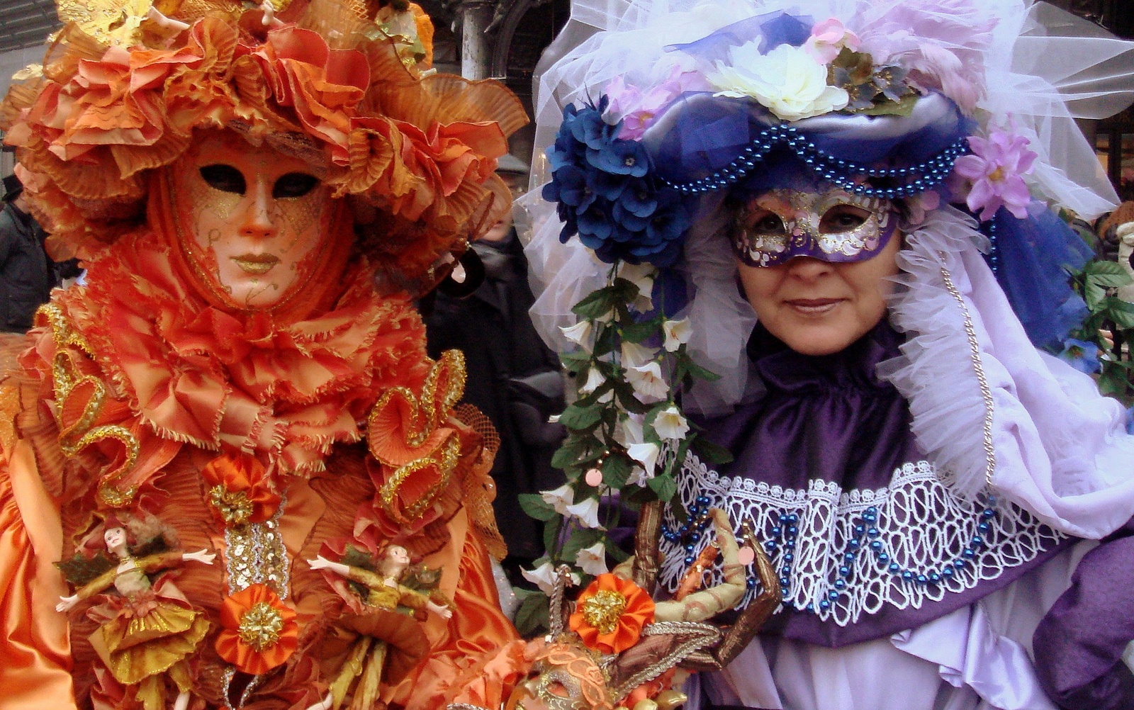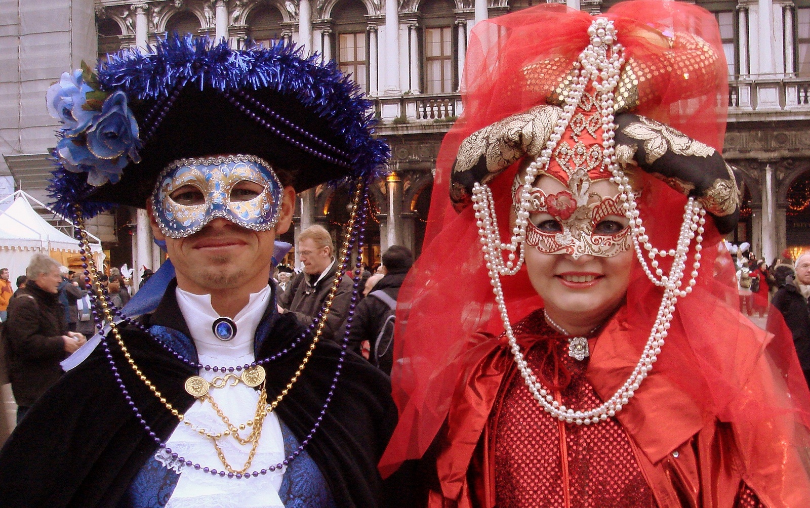 Les pros du Carnaval (ceux qui viennent tous les ans depuis des années !!!…) nous apprennent également qu’il est mieux d’avoir au moins 2 costumes différents par personne ( costume historique + costume vénitien ou 2 costumes historiques de différentes époques) pour laisser « respirer les costumes », changer d’ambiance, pouvoir assister à différentes fêtes et bals… Certains apportent plus de 80 kgs de bagages et ils viennent donc en train. La plupart préfèrent louer un appartement pour la semaine, ce qui leur revient moins cher et ils ont plus de place pour stocker leurs costumes et s’habiller…