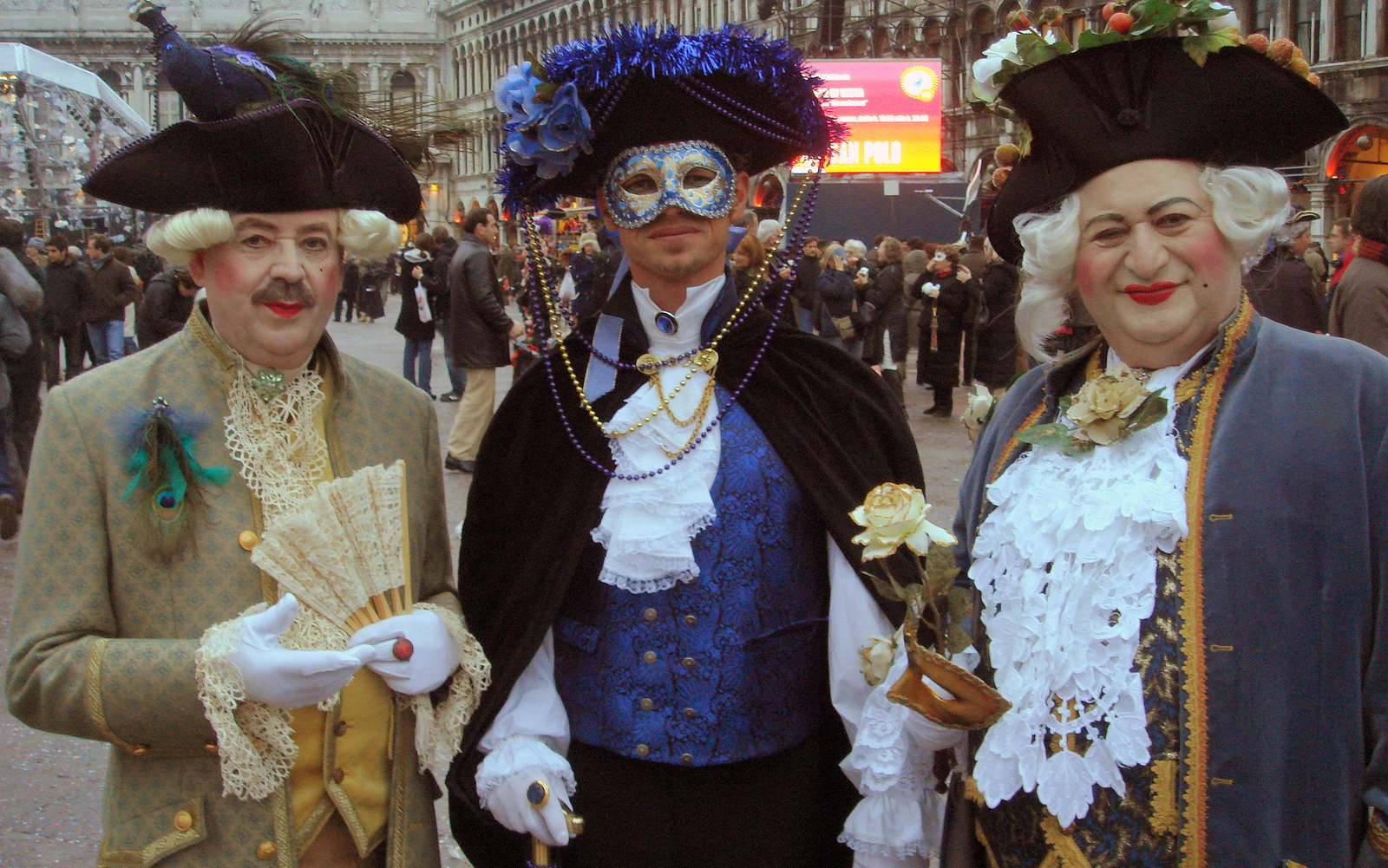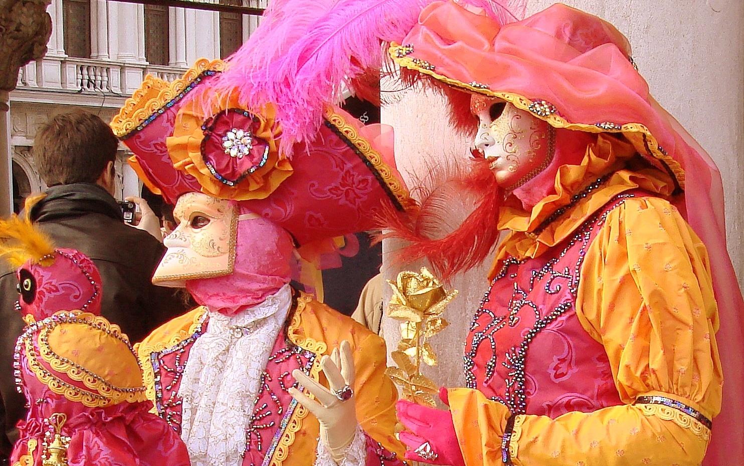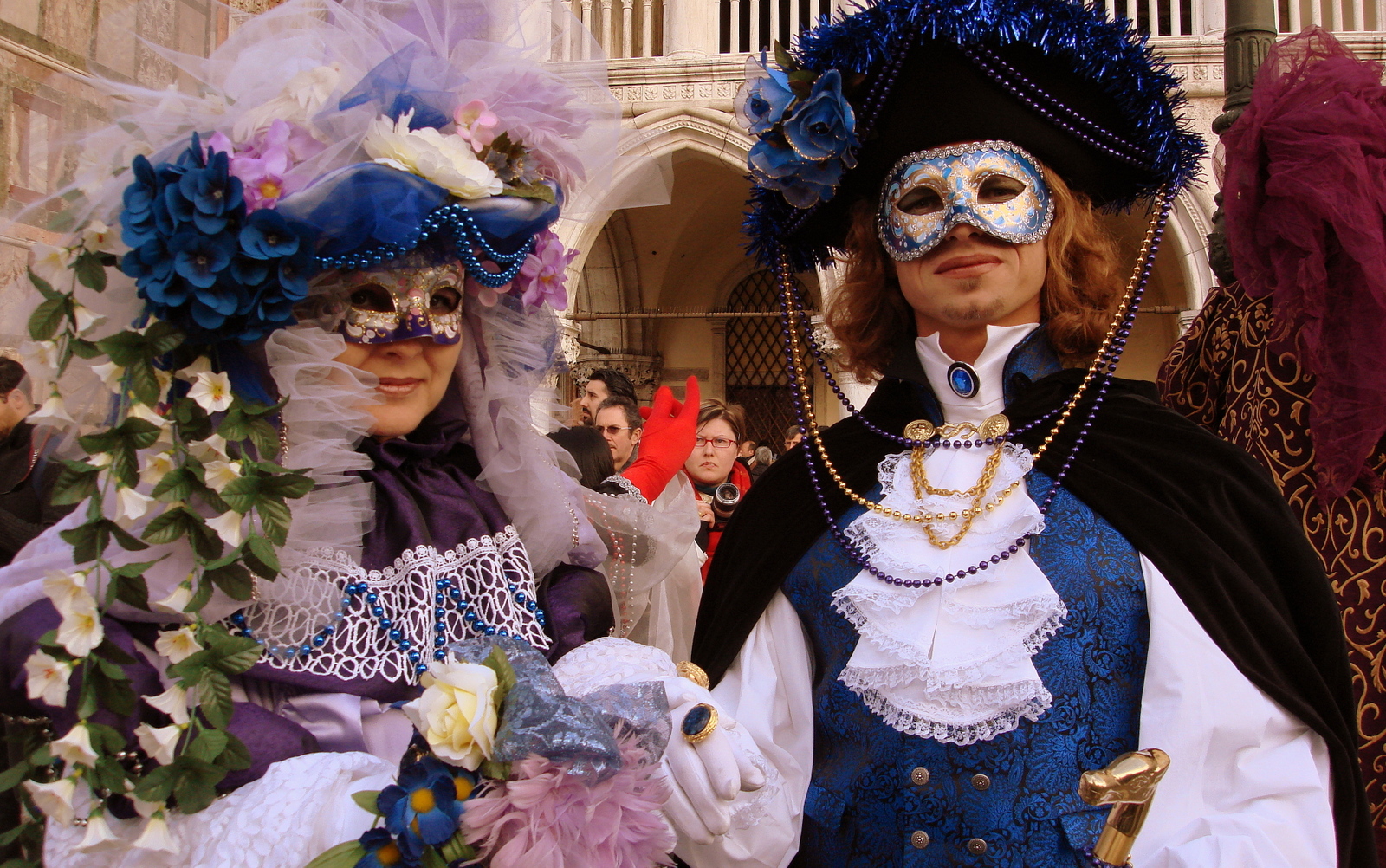 – Ils se saluent d’un signe de tête en costume vénitien et d’une révérence en costume historique quand ils se croisent.