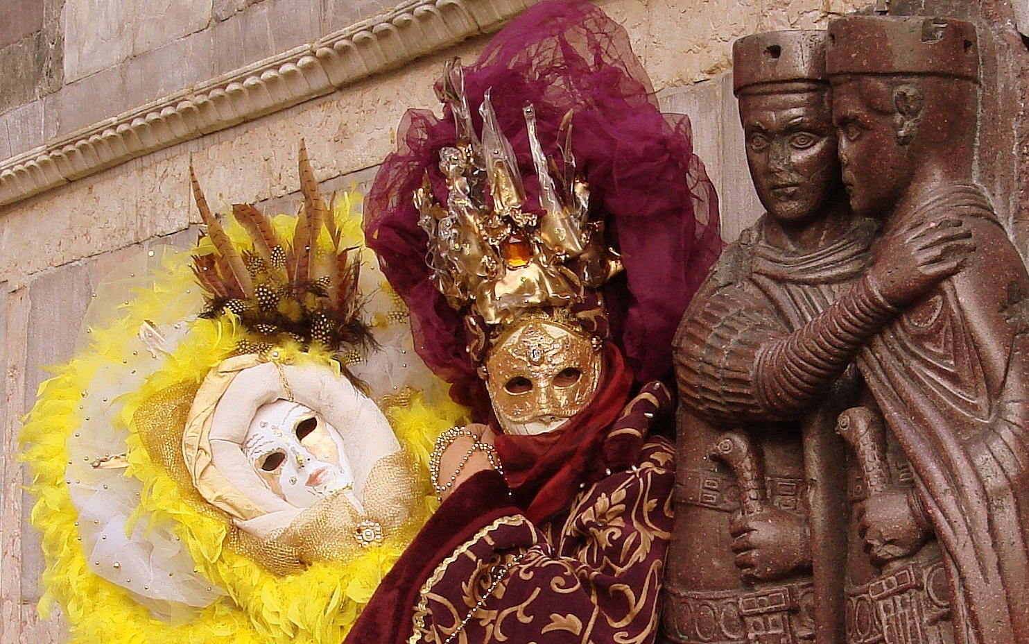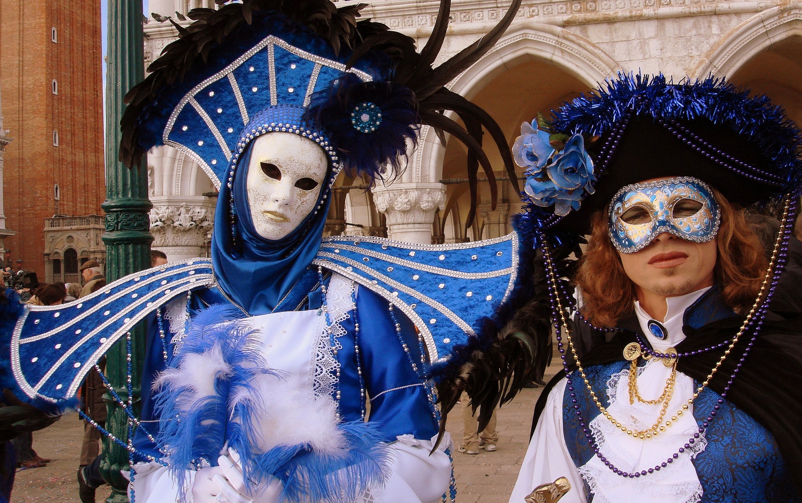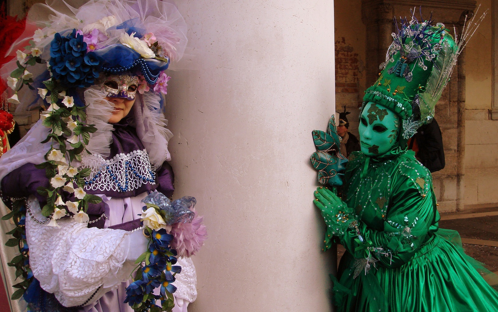 – Ils se saluent d’un signe de tête en costume vénitien et d’une révérence en costume historique quand ils se croisent.