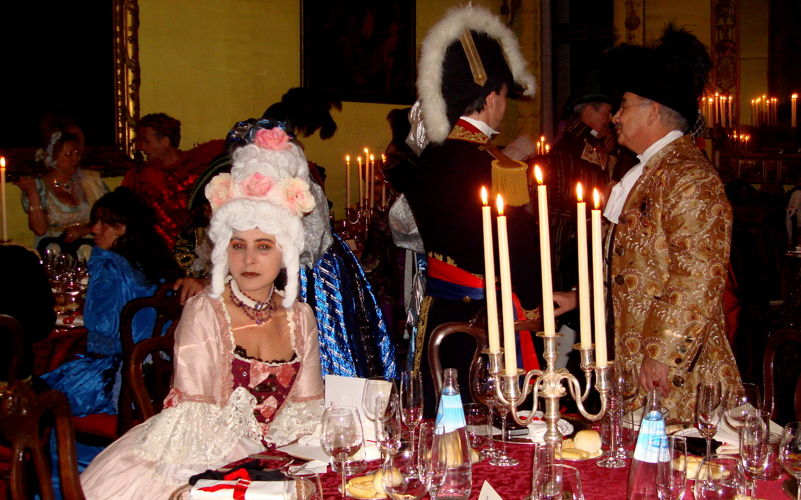 On est accueillis au rez de chaussée du palais par un orchestre baroque et 3 énormes fontaines de prosecco (vin pétillant italien style champagne) classique, cristal et rosé. Des serveurs en tenue d’époque nous proposent de succulents amuse-bouche et nous invitent à nous rendre au 1er étage pour le repas.
