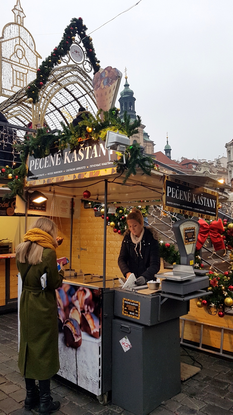 Immanquable si on se trouve sur place entre le 30 novembre et le 6 janvier pour cette année 2019, on peut y acheter de l’artisanat traditionnel tchèque, des décorations de Noël, manger des marrons grillés, des sandwichs à la saucisse (paprika ou aux herbes) et goûter à l’incontournable Trdelnik.