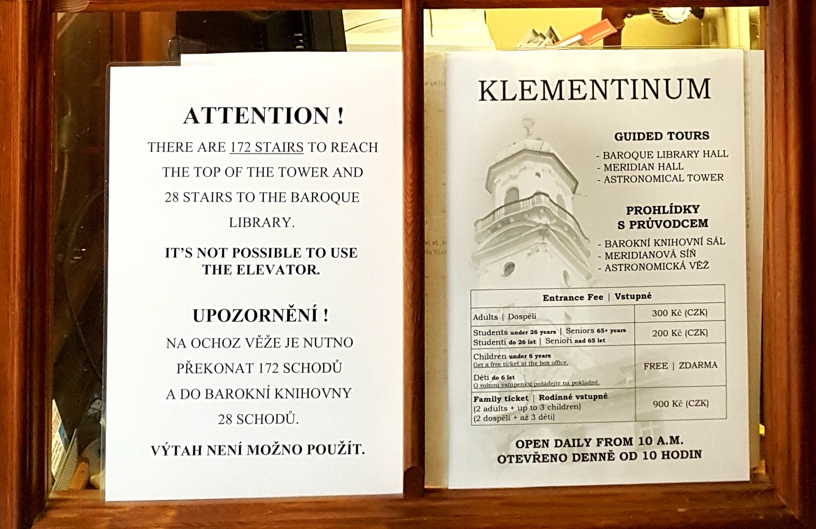 On ne peut visiter le Clementinum qu’en visite guidée en anglais mais un texte informatif en français est disponible.