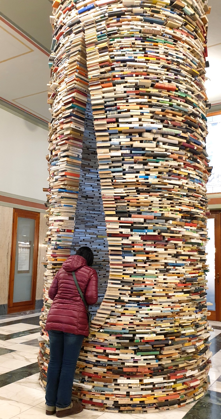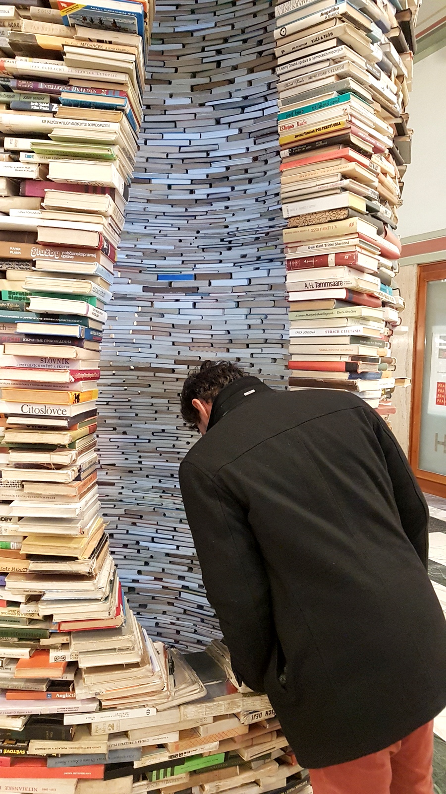 A moins de parler couramment tchèque, on ne va pas à la bibliothèque pour emprunter un livre mais pour admirer depuis 20 ans, une œuvre très originale: une sculpture de Matek Kren baptisée « Idiom », un véritable tunnel de livres de 5m de haut sur 2m de diamètre construit avec les livres inutilisés de la bibliothèque, environ 8000 parait-il !!!