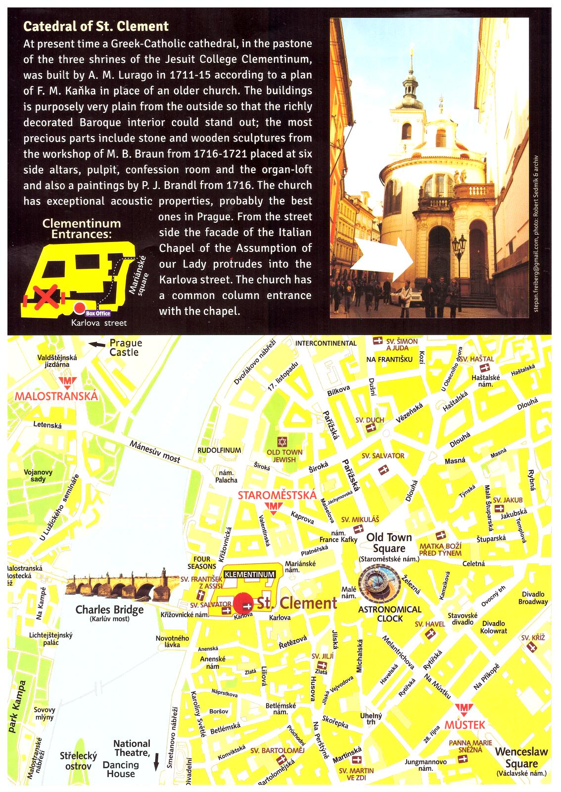 En sortant du Clementinum, on passe devant la Cathédrale St Clement où un concert classique de 60 mns était donné le soir même par le Bohemian Symphony Orchestra Prague. On avait failli acheter les places sur internet et on a bien fait d’attendre d’être sur place parce sur place, on nous a proposé de meilleures places, réservées, au 1er rang, moins chères: 700 CZK (27,60€) au lieu de 950 CZK (37,50€)…