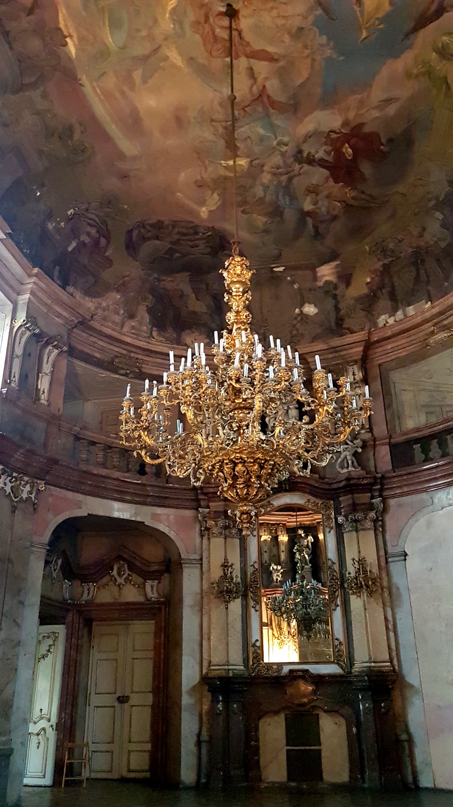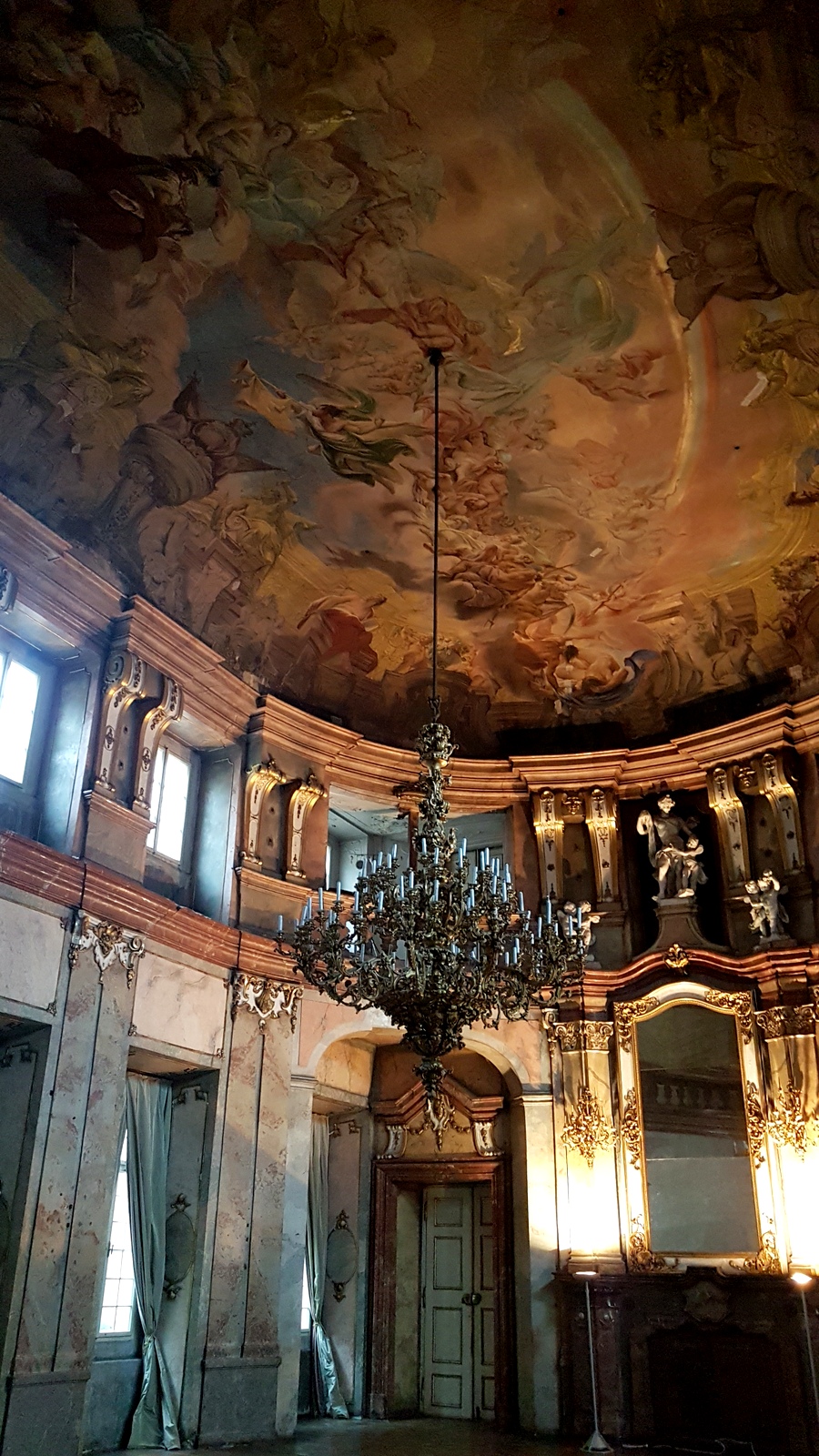 A part, la salle de bal qui a servi de décor au film « Amadeus » et dont les fresques du plafond sur le thème du rassemblement des dieux olympiques sont superbes, le reste du bâtiment est assez délabré !!! L’époque où Mozart y rencontrait Casanova est vraiment révolue…