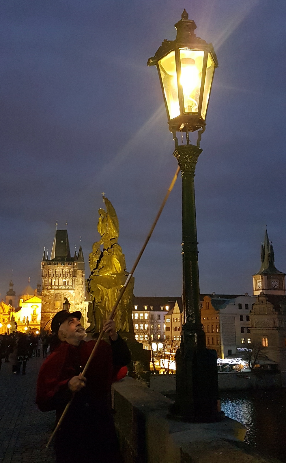 L’allumage de réverbères à Prague remonte à 1847 et s’est arrêté en 1985 !!! En 1940, il n’y avait pas moins de 9000 lampes à gaz dans la ville qui ont été progressivement remplacées par l’électricité. A partir de 2002, les lampes à gaz avec allumage automatique ont été rétablies dans la plupart des zones historiques de la ville faisant du pont Charles le seul pont du monde éclairé au gaz !!!