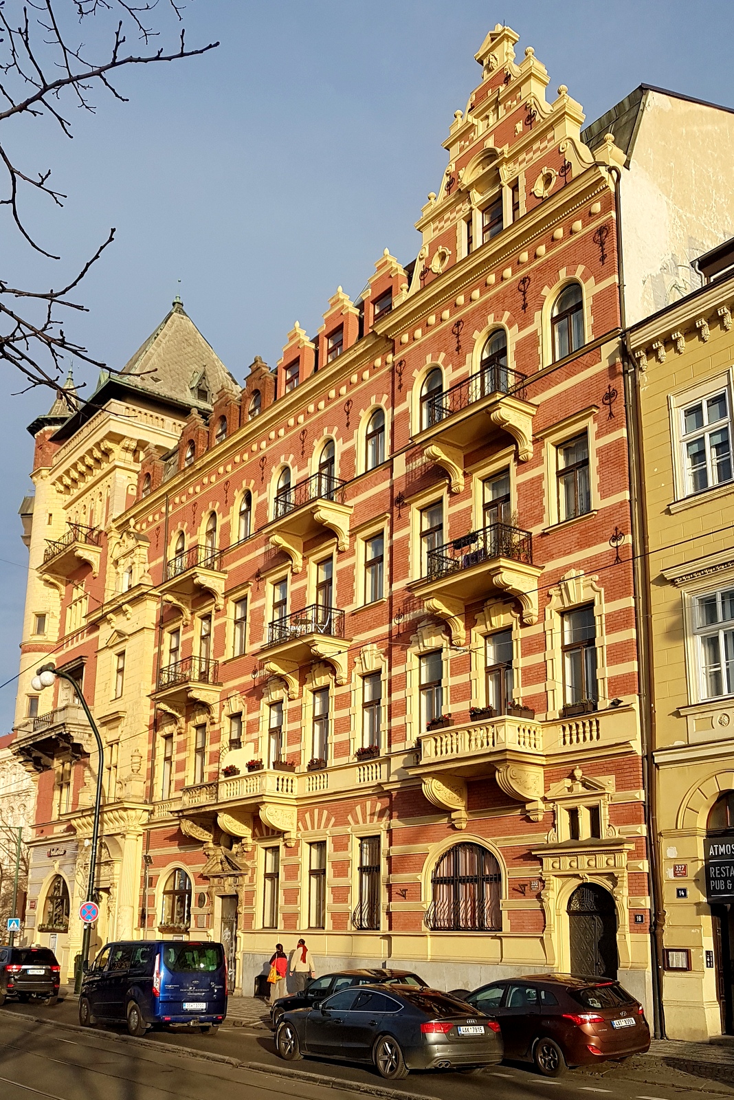 Sur la droite, la rue Gorazdova nous interpelle avec ses façades art déco toutes plus belles les unes que les autres. On y découvre également la présence d’un café aux chats où on peut venir prendre sa dose de câlins et de ronrons tout en consommant une boisson chaude…