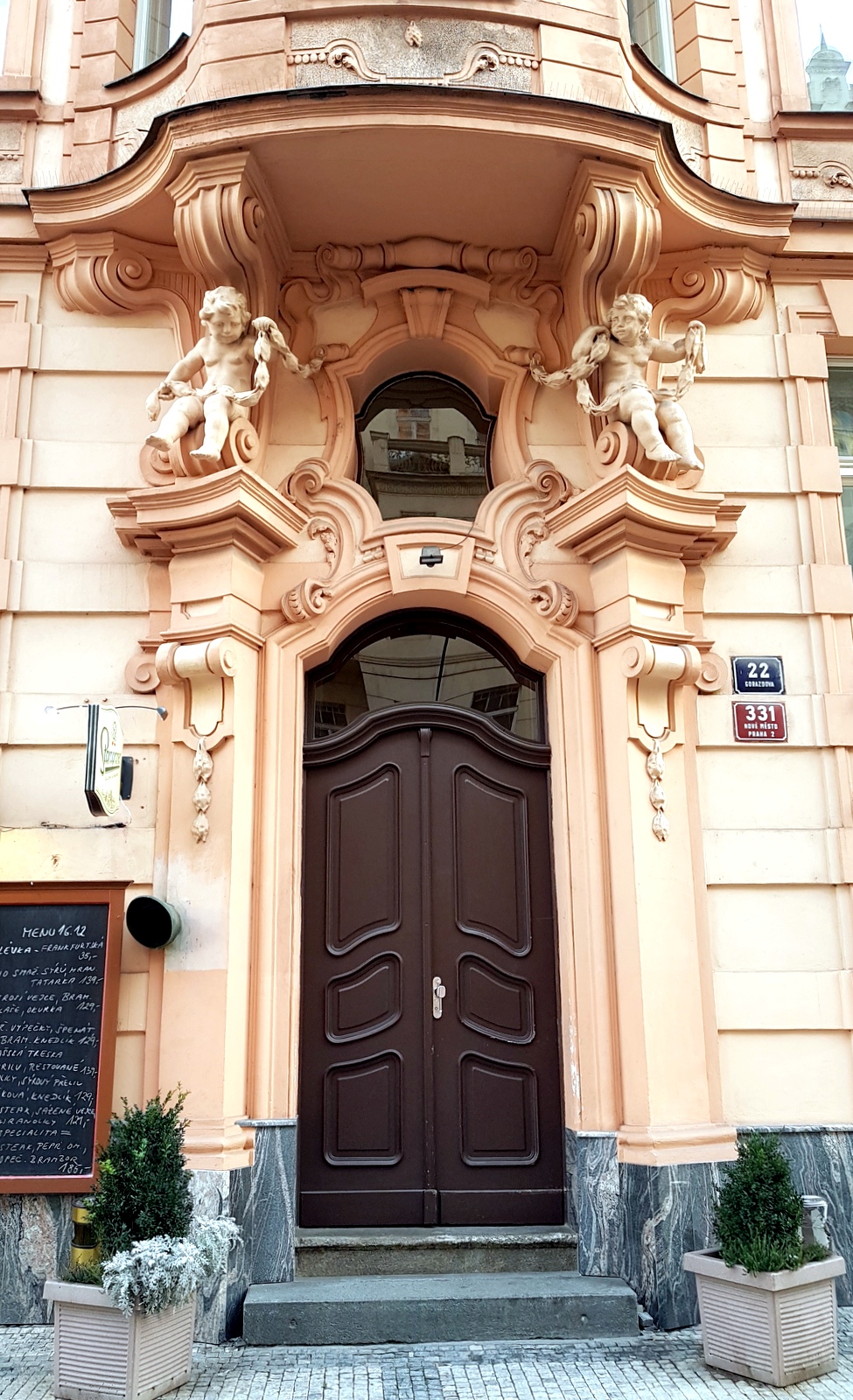Pour rester un peu dans son ambiance, on peut loger dans son petit frère l‘HOTEL MERAN mitoyen sur sa droite, un des hôtels les plus étroits du centre de Prague et qui est lui aussi de toute beauté…