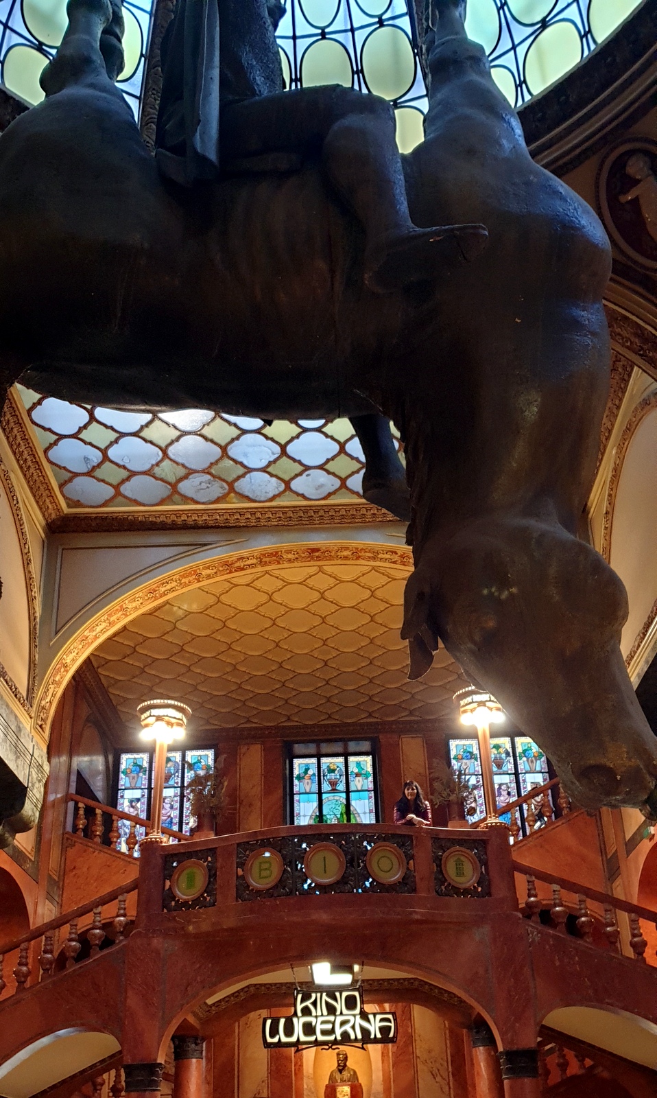 – un café Art Déco (le somptueux KAVARNA LUCERNA) auquel on accède par le monumental escalier qui débute sous le cheval de David Cerný. Il est réputé pour être un des plus beaux cafés de Prague.