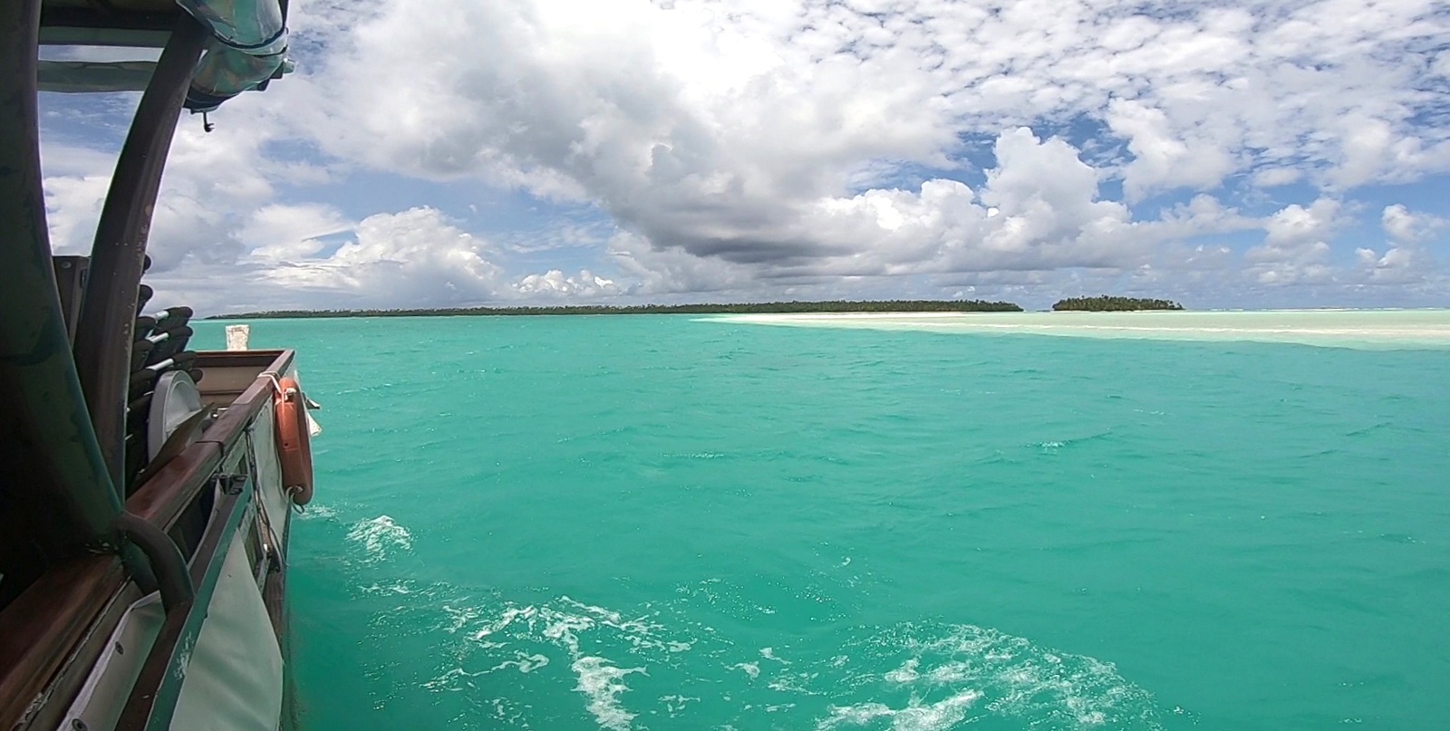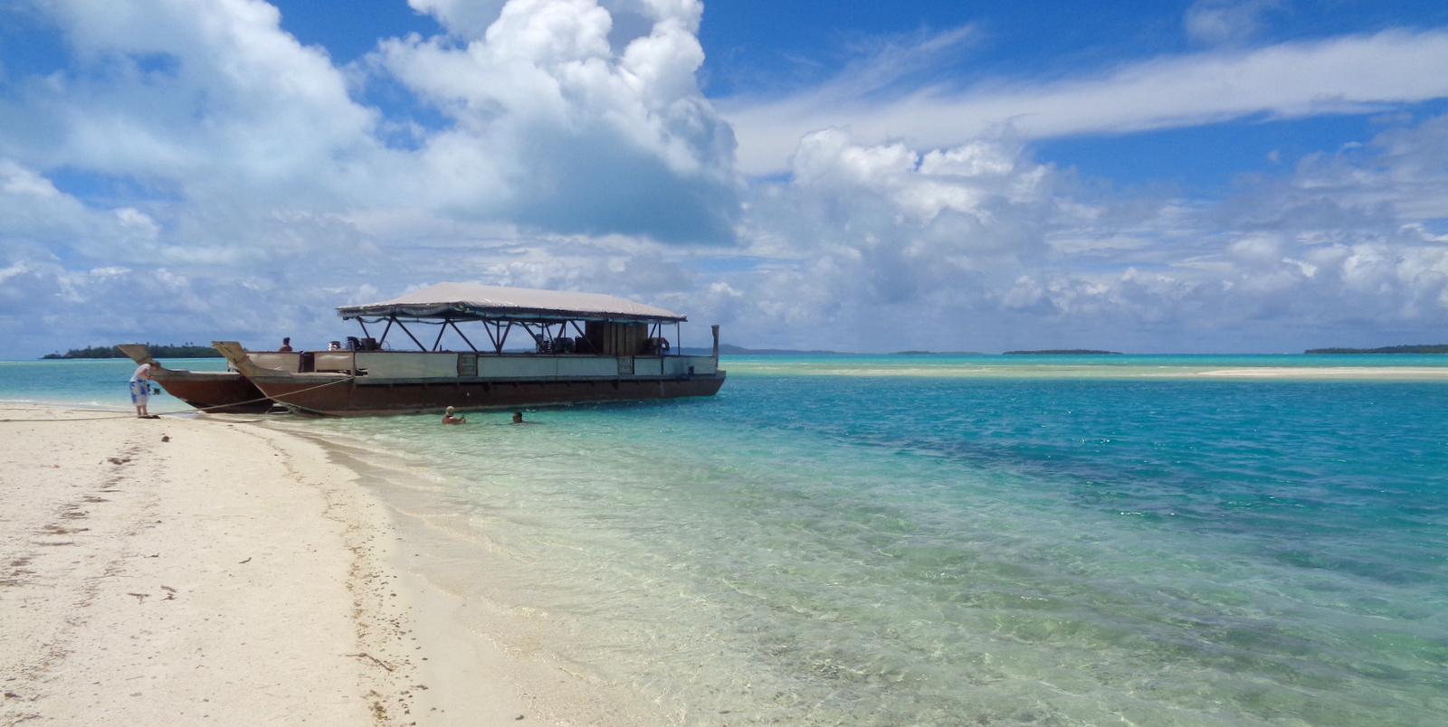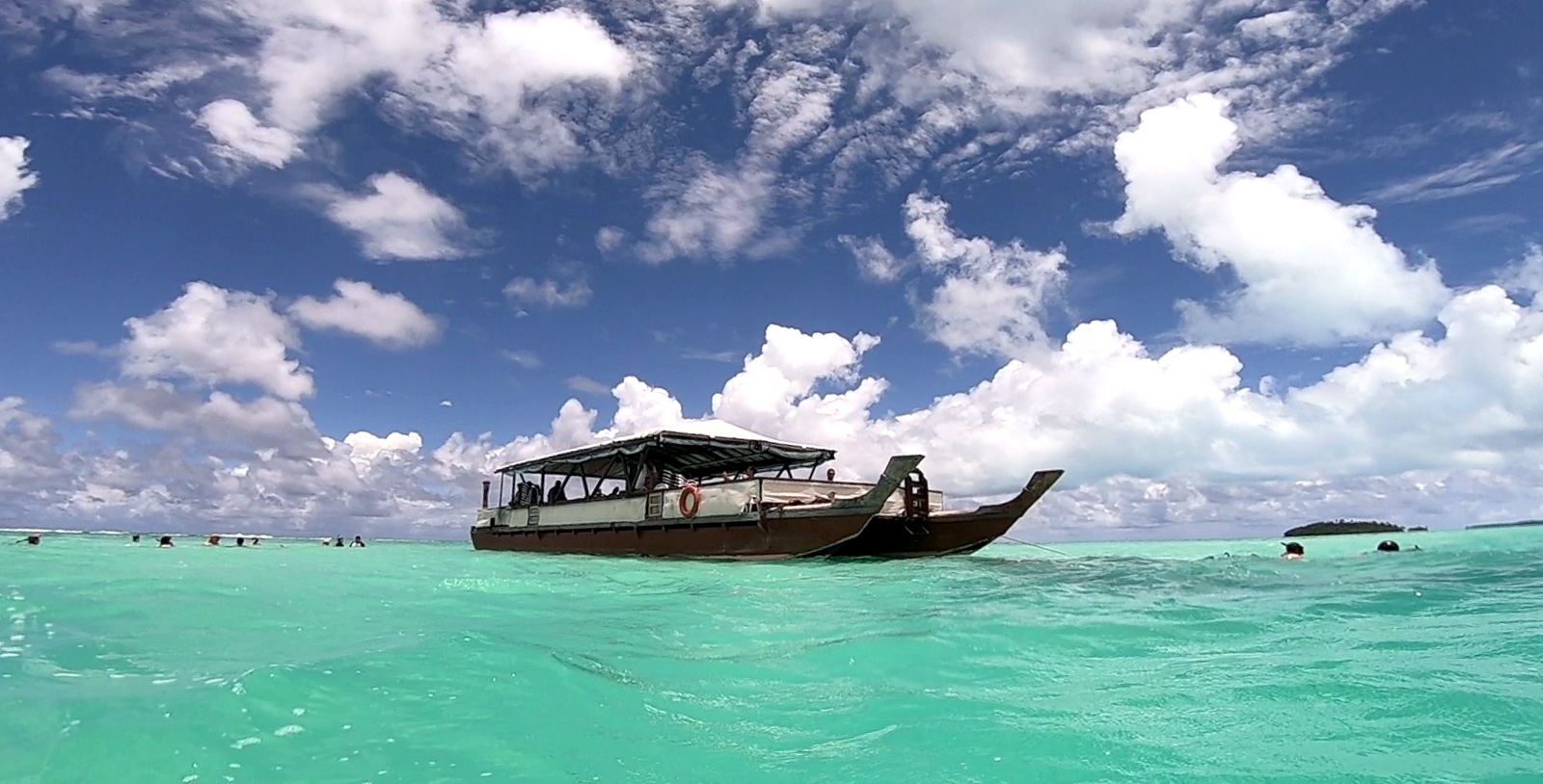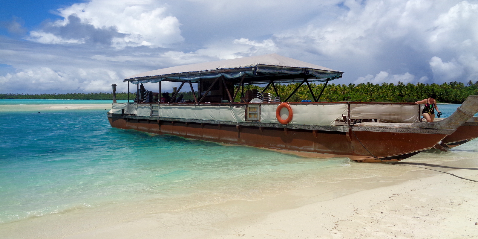 – le bateau part de la plage OOTU après l’AITUTAKI VILLAGE, c’était donc très pratique pour nous (on peut aussi être transporté depuis le centre ville…). Pour info, le départ du Bishop Cruises se fait devant l’AITUTAKI VILLAGE et aucune idée pour le TE KING car les participants étaient ramassés sur la presqu’île et emmenés ailleurs…
