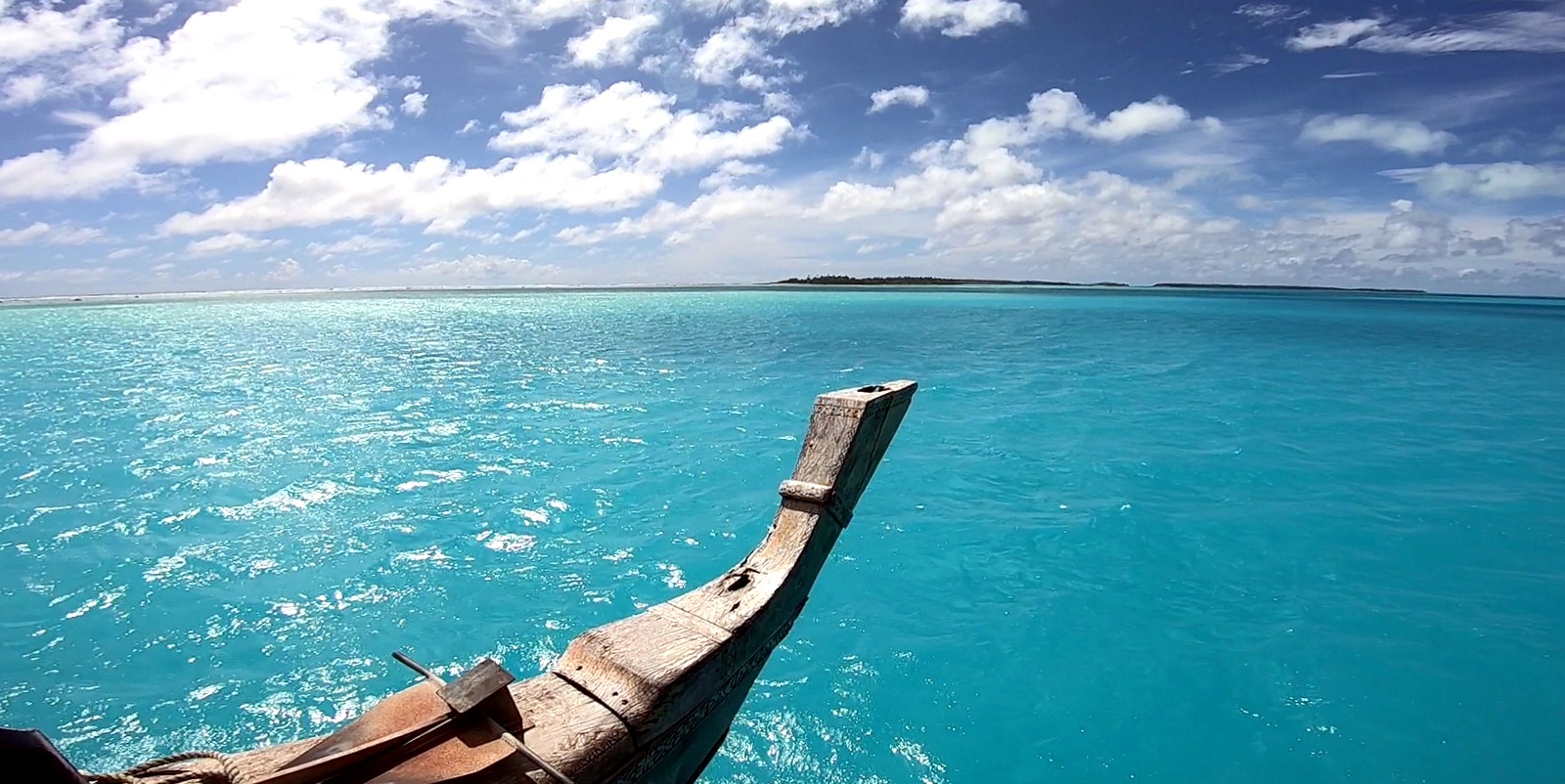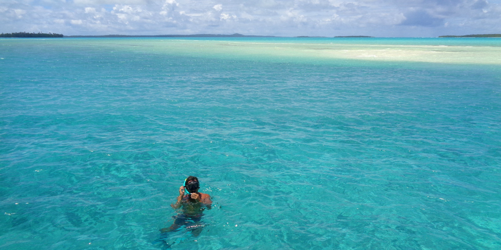 On vogue au milieu du lagon sur une eau incroyablement bleue…