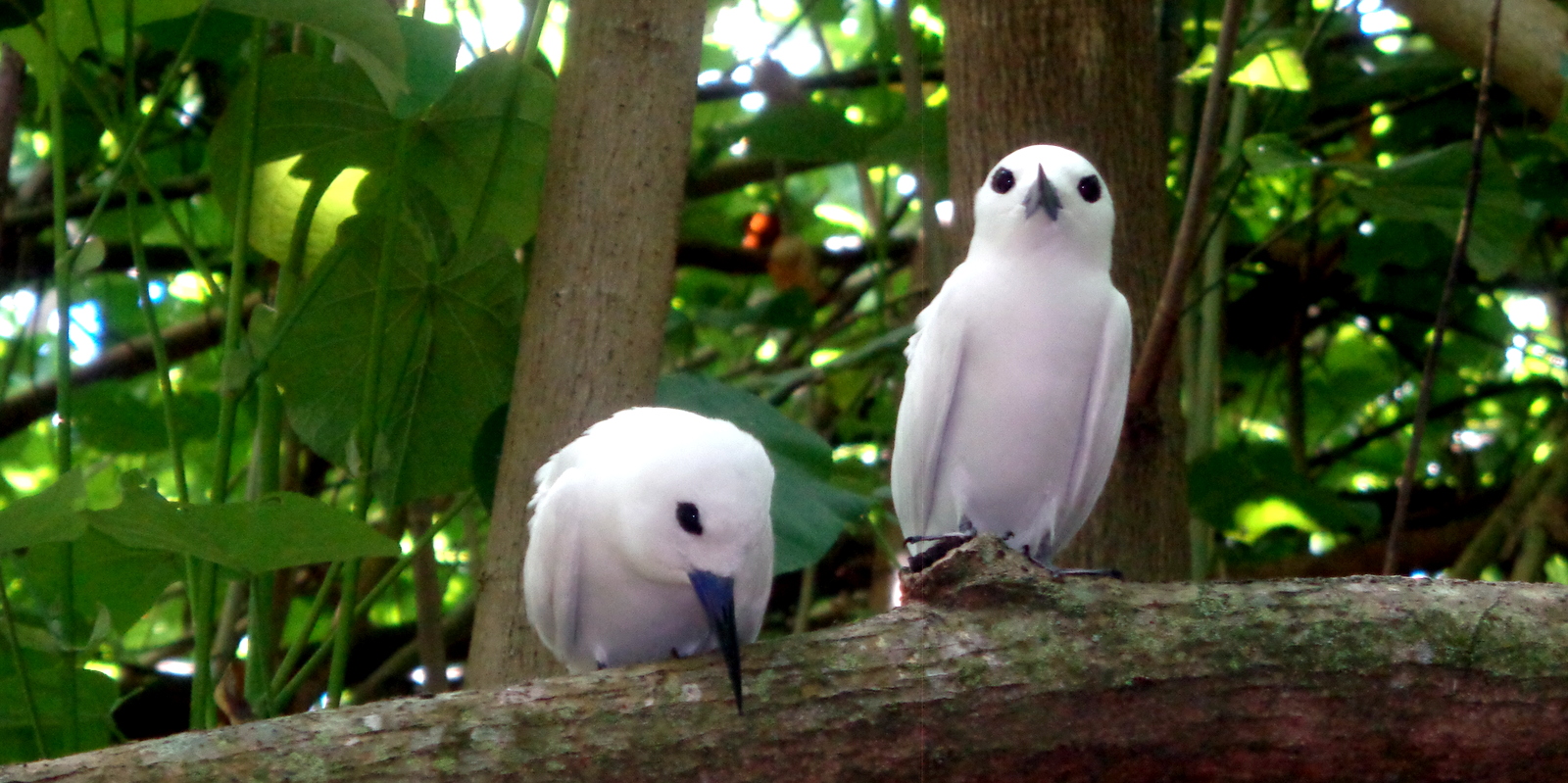 Prochaine étape: le motu appelé l’île aux oiseaux où nichent un grand nombre de gygis blanches qui ressemblent vraiment à des peluches avec leurs grands yeux noirs !!! L’îlot est désert et la traversée de la forêt pour voir les nids et la plage aux formations volcaniques de l’autre côté a un petit air de Koh Lanta !!!