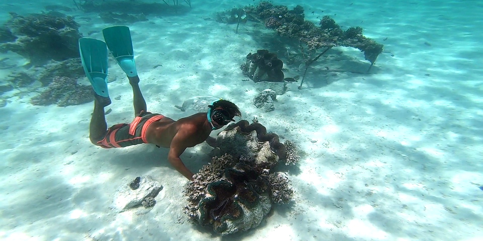 L’île est grande et belle et c’est là qu’on aura le plus de temps libre. Entre se balader sur la plage, visiter le bureau de poste, nager avec des poissons énormes très familiers ou aller voir les bénitiers géants, on ne s’ennuie pas une seconde…..