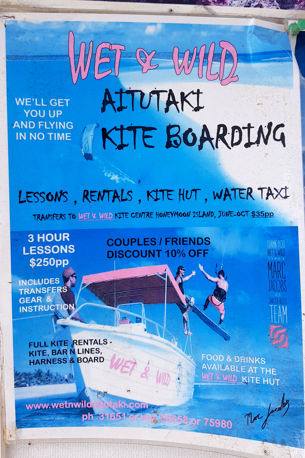 Le meilleur endroit pour décoller de la presqu’île est la plage d’OOTU après l’AITUTAKI VILLAGE. Vous pouvez aussi demander un transfert en bateau jusqu’à HONEYMOON ISLAND à ces 2 prestataires ci-dessous au tarif de 35 NZ$ (21€).