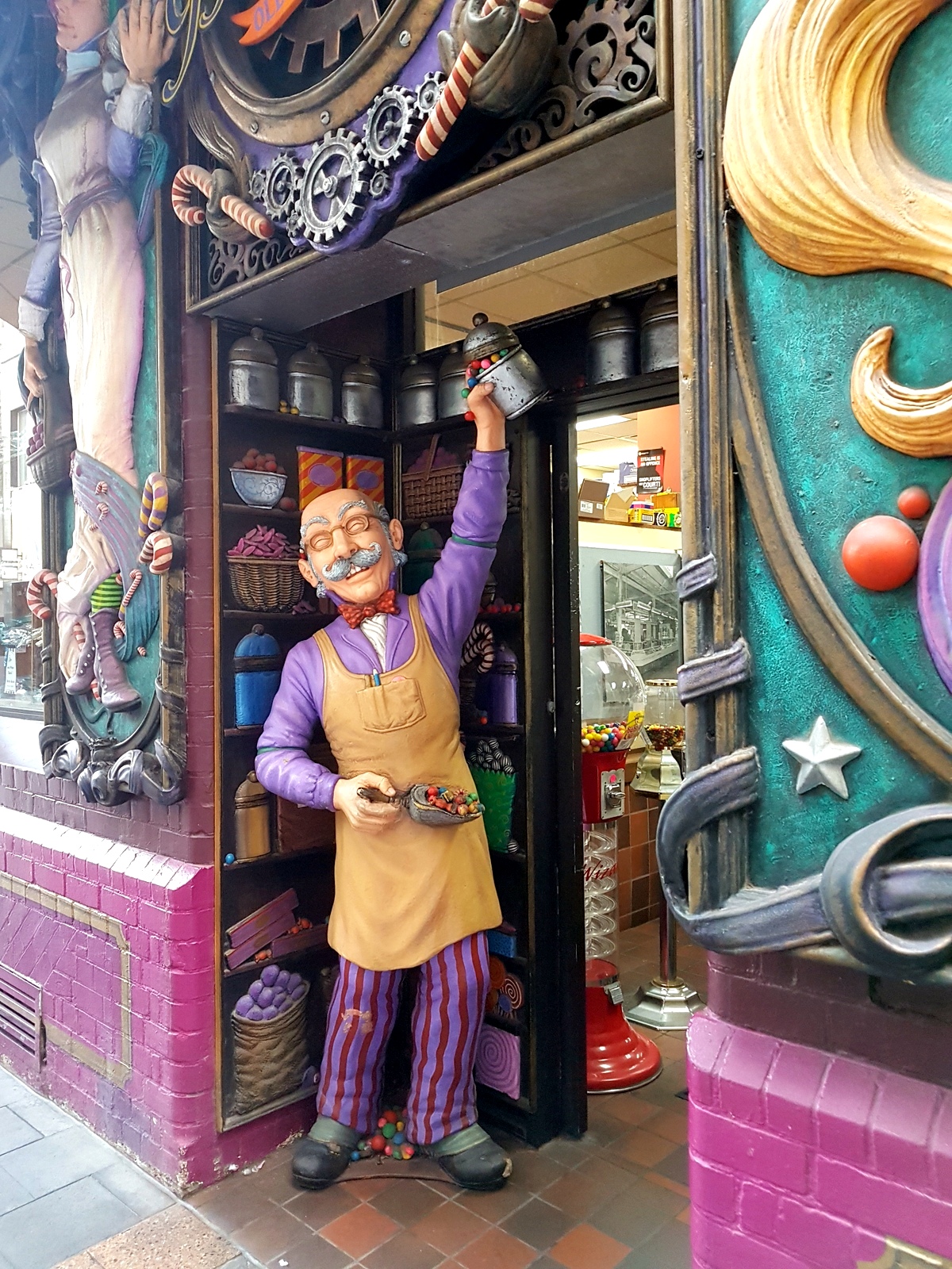 Au sud de Rundle Mall, cette confiserie est extraordinaire. D’abord par son aspect extérieur digne d’un conte de fées et par la diversité de bonbons en tous genres qu’elle propose… Fondée en 1906, c’est de loin, la plus grande confiserie de la ville. Si vous aimez le sucre et que vous ne souffrez pas de diabète, vous allez avoir l’embarras du choix sinon… les parfums de bonbons y sont tellement puissants qu’on est rassasié sans même en manger, pratique !!!