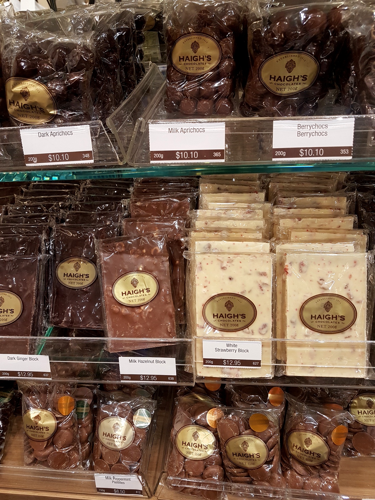 Après le fromage, c’est le chocolat qui a nous le plus manqué le plus sur ce voyage alors quand on a entendu parler de visiter la chocolaterie Haigh’s d’Adelaide, on y est allés en courant !!!