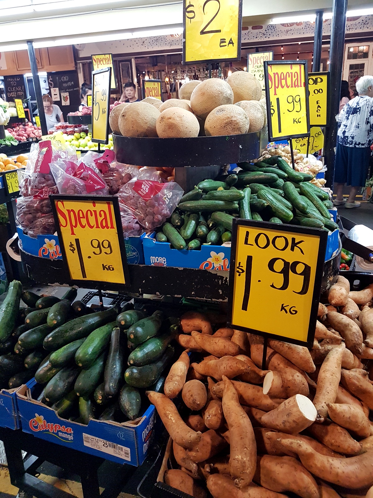 Fruits et légumes exotiques côtoient ceux que nous avons en France toute l’année, et tout ça à des prix beaucoup plus doux que chez nous, on n’a que l’embarras du choix !