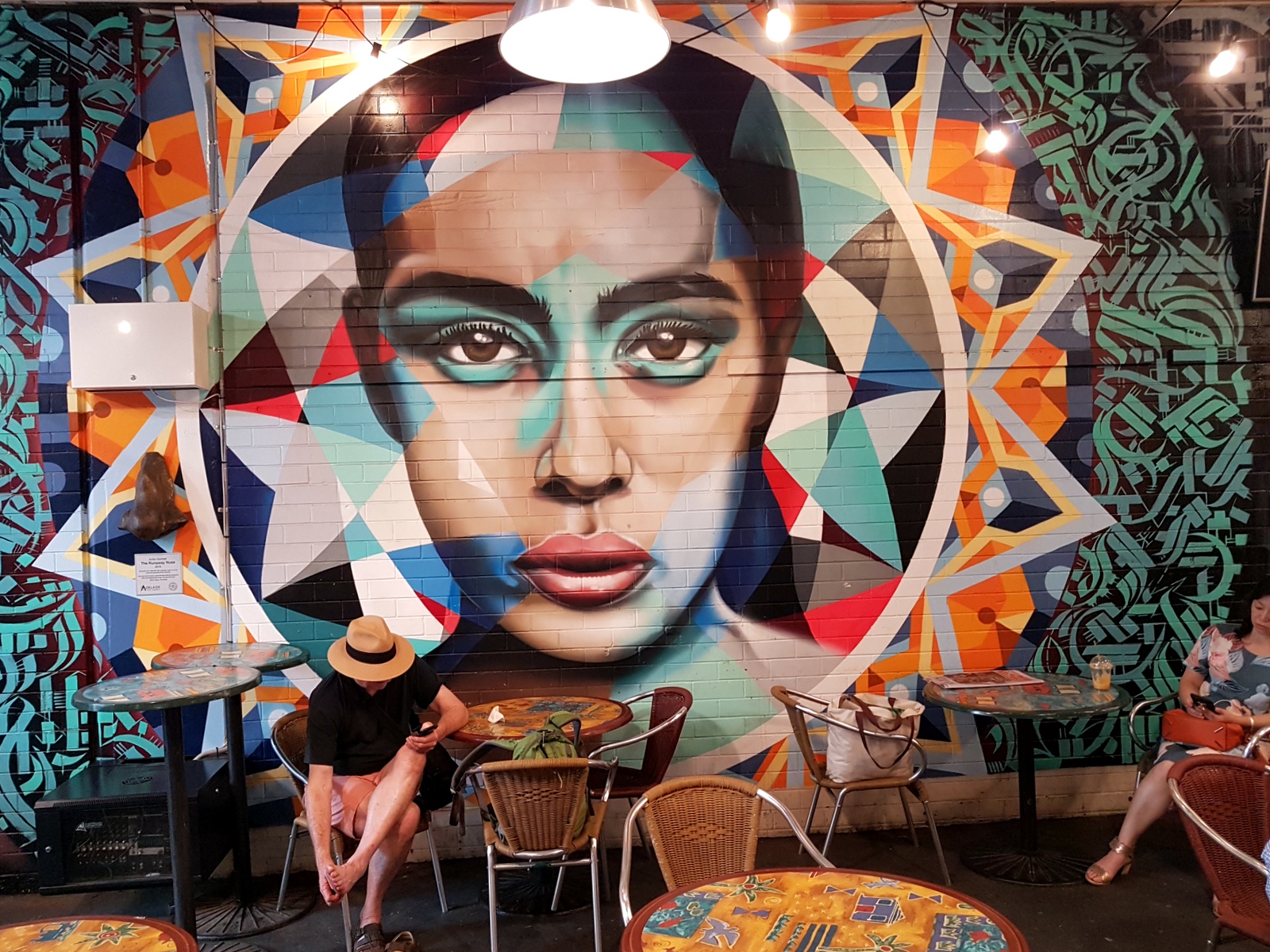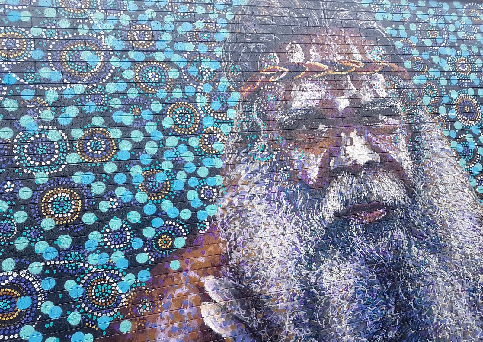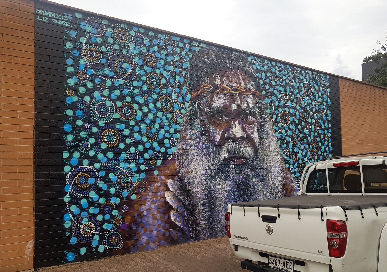 En sortant du marché, on a eu l’heureuse surprise de « tomber » sur une magnifique fresque murale aborigène…