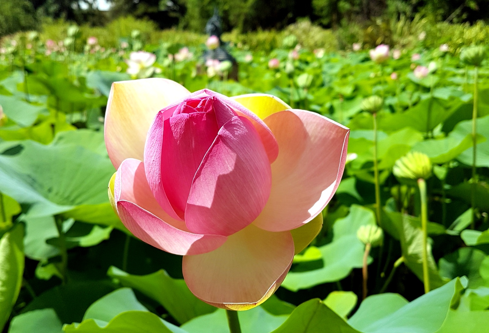 Juste à côté, la roseraie (THE INTERNATIONAL ROSE GARDEN) permet de se promener au milieu de quelques 5000 rosiers de toutes les espèces: anciennes, anglaises, buisson, grimpantes… Elle tient un rôle fondamental dans l’acclimatation des ces fleurs en Australie. On peut en acheter certaines…