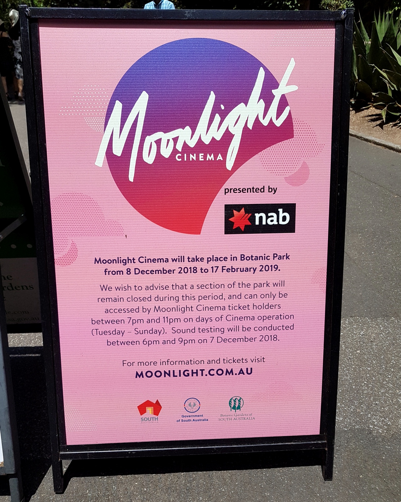– MOONLIGHT CINEMA, Botanic Park (adjacent à l’Adelaide Botanic Garden), Hackney Road