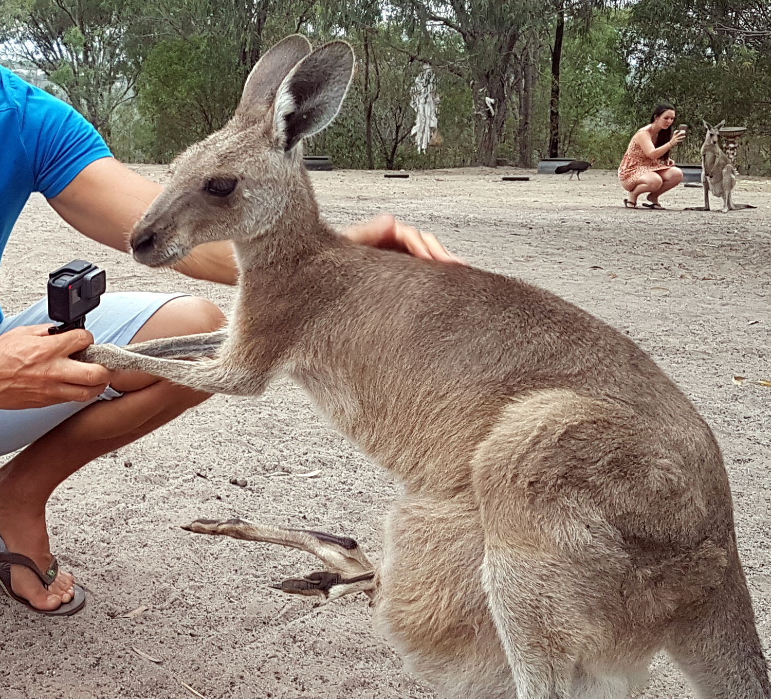 Depuis bientôt 10 ans, Gary et Denise consacrent leur vie à soigner et relâcher dans la nature des bébés kangourous (joeys) orphelins. On peut aller visiter le refuge tous les jours de 15h30 à 16h30 et nourrir les marsupiaux avec des patates douces que Gary découpe en rondelles. Les animaux sont libres, à part 2 ou 3 particulièrement agressifs et ils viennent volontiers passer un moment avec nous.