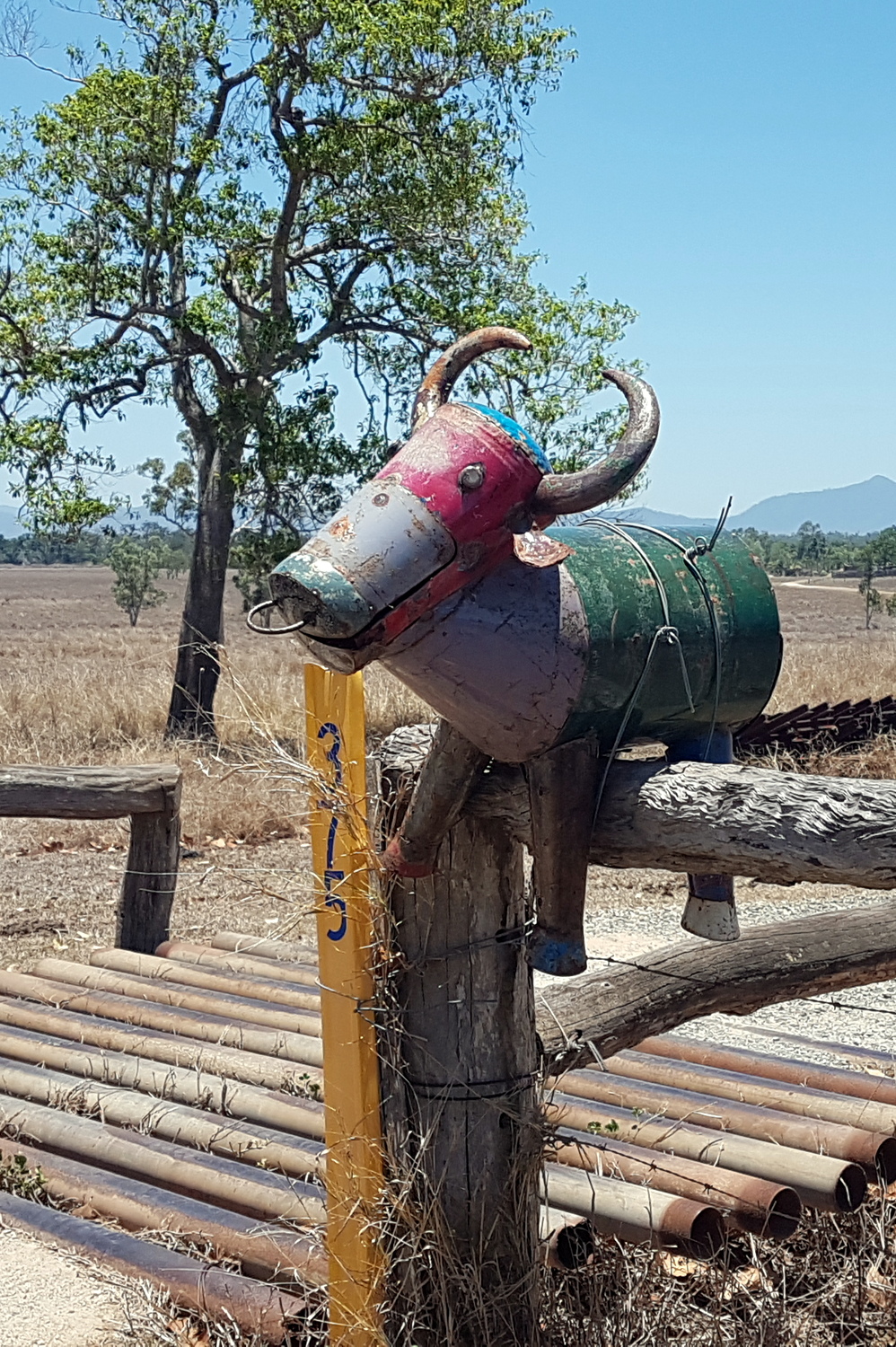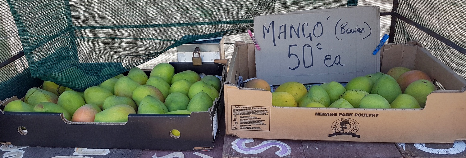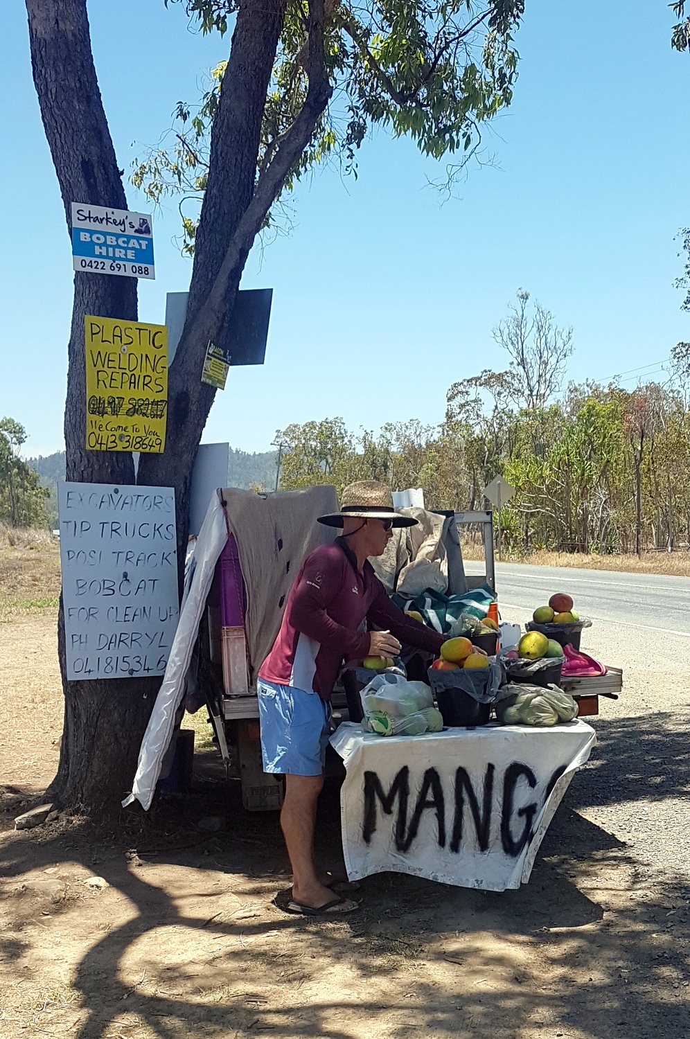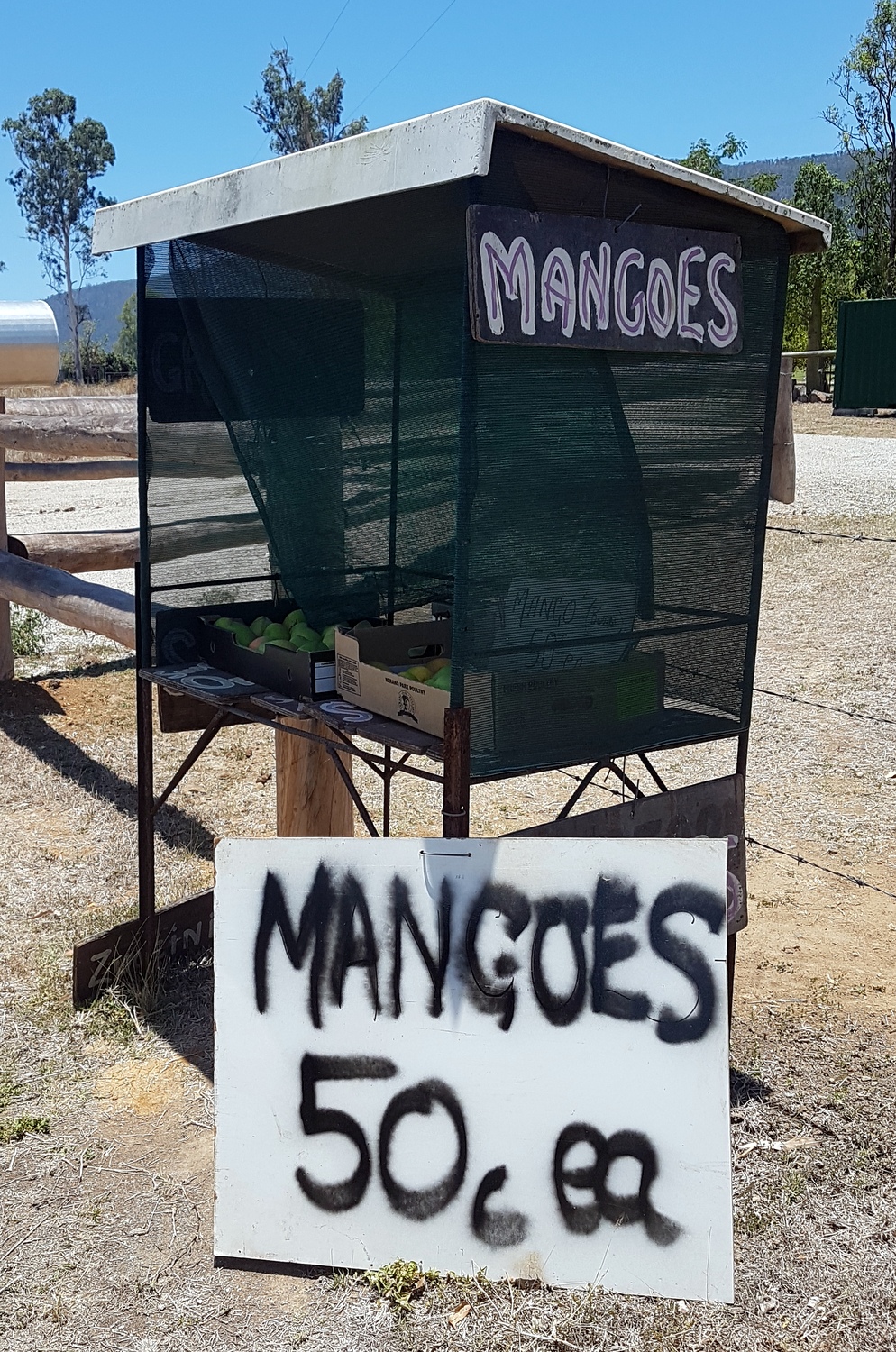 Sur la route, on croise des stands de vente de mangues où on ne peut que s’arrêter… C’est à partir de là qu’on commence à voir ces surprenantes boites aux lettres en forme d’animaux réalisées avec des bidons de laits.
