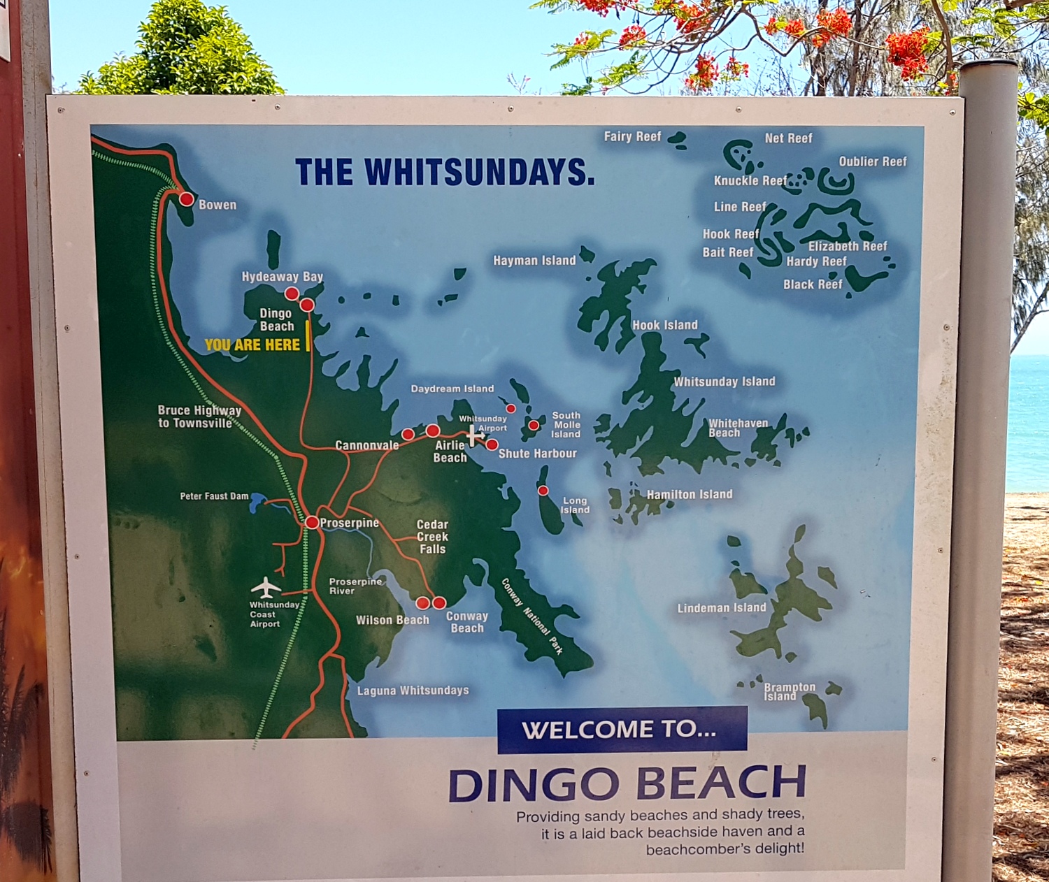 Il y a environ 80 kms entre Bowen, Airlie Beach et les Whitsunday Islands, on n’hésite donc pas une seconde à faire un détour d’un peu moins de 50 kms aller-retour pour aller à DINGO BEACH et HIDEAWAY BAY.