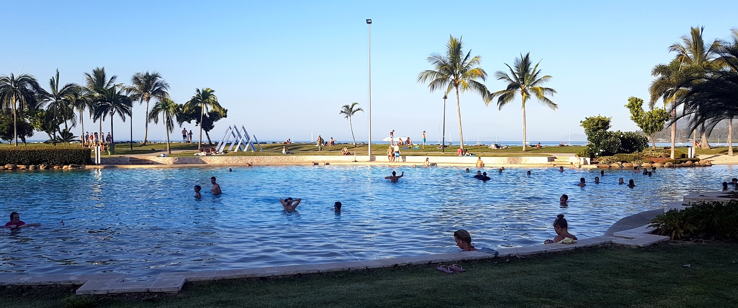 Le lagon artificiel d’Airlie Beach est immense, l’eau est très chaude… Des barbecues, des plages de sable, un lieu de rdv prisé par les locaux… On fréquente de plus en plus ces lagons et j’avoue qu’on ne s’en lasse pas…