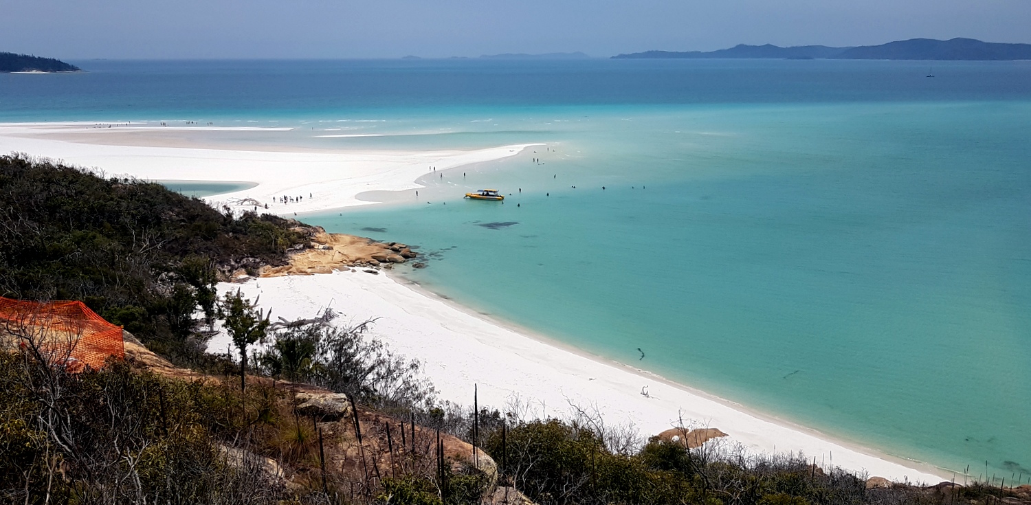 La compagnie SCAMPER nous emmène sur l’île (Whitehaven) en bateau privé pour 155 AU$/personne/aller-retour (95€), minimum 2 personnes.