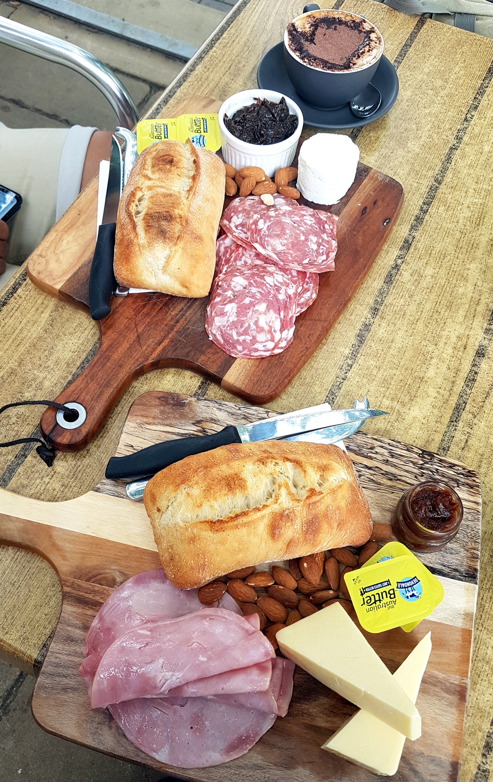 A défaut de pouvoir visiter leur fabrique en dehors de la ville qui était fermée (toujours à cause de la canicule!), on est allé dans leur boutique/cafe pour faire une dégustation de fromages et prendre un petit-déjeuner… copieux et délicieux !!!