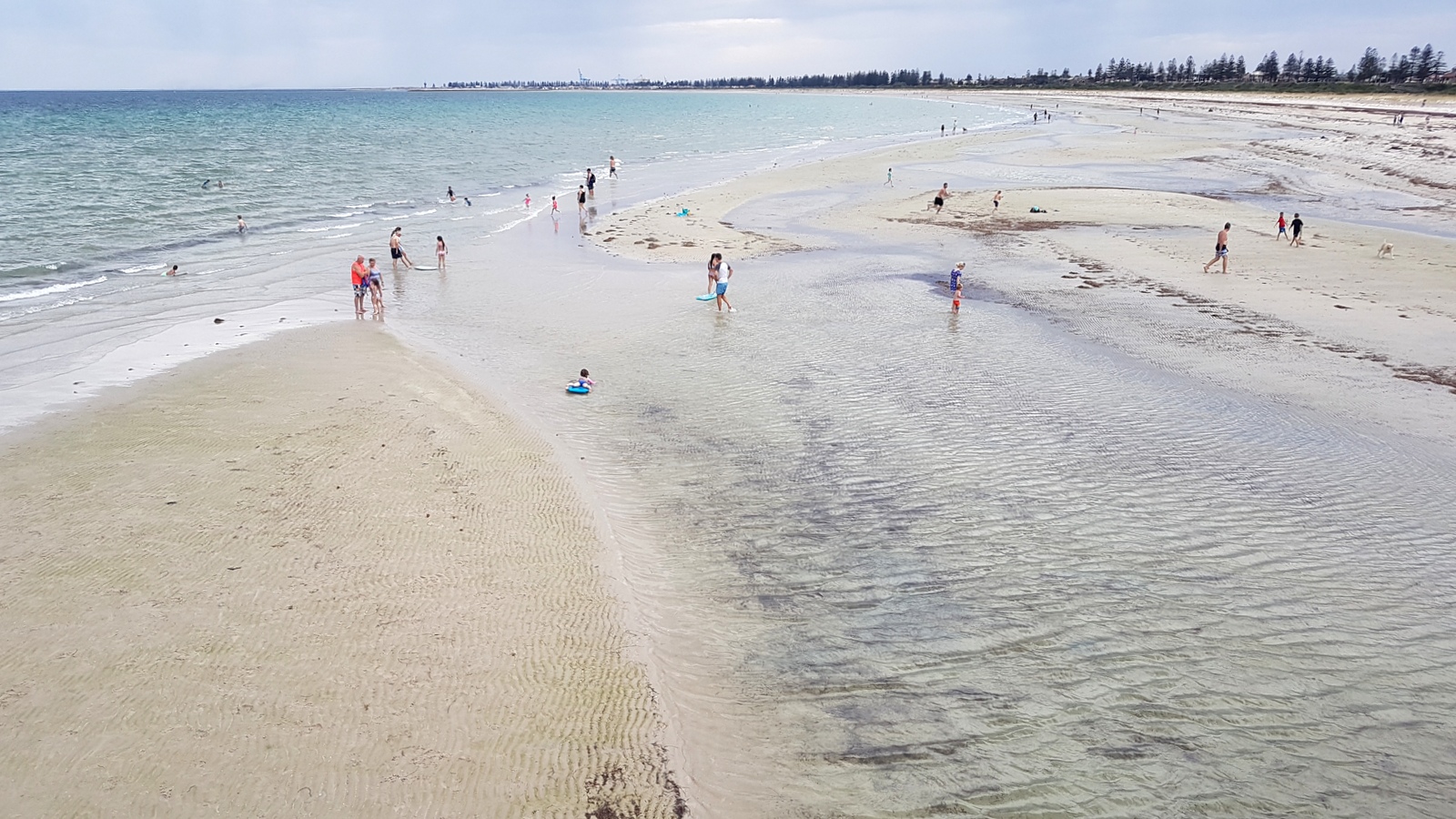 Au nord de la jetée, la plage, immense, continue sur Semaphore Beach avec ses nombreux bancs de sable qui font le bonheur des enfants pour se baigner…