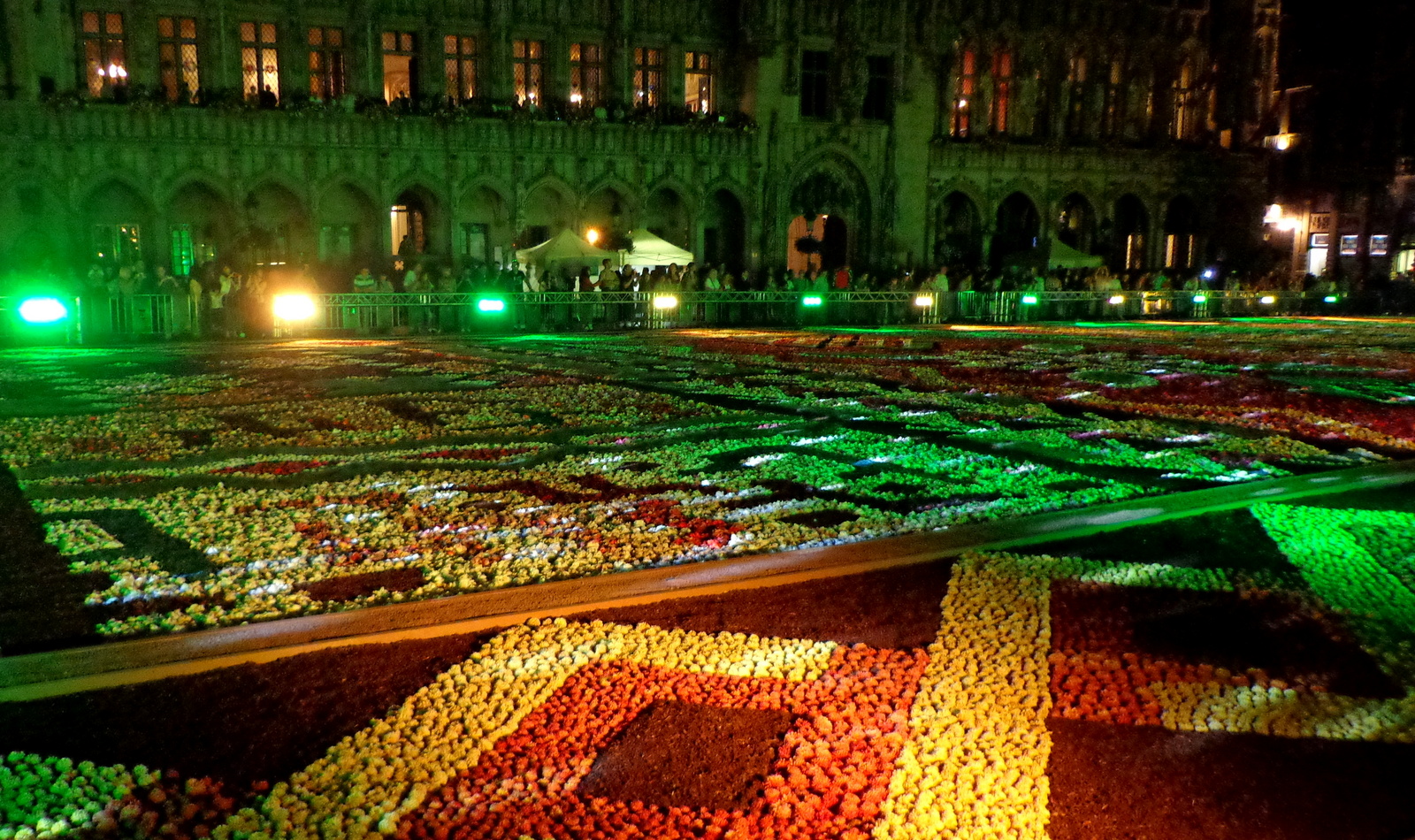 Si en se promenant autour du tapis, on voit les détails de la fresque, c’est en prenant de la hauteur qu’on voit le mieux le motif dans son ensemble. C’est aussi un des meilleurs moyens pour admirer la splendeur de cette place considérée comme l’une des plus belles du monde et qui a été inscrite en 1998 sur la liste du patrimoine mondial de l’UNESCO. Si vous aimez l’art gothique, baroque, vous ne pourrez pas rester insensible devant cet harmonieux ensemble de bâtiments dont les façades sont toutes plus belles les unes que les autres… Une webcam a été installée sur la place et vous permettra de la visiter ainsi que le tapis virtuellement si vous n’avez pas l’occasion de vous déplacer…