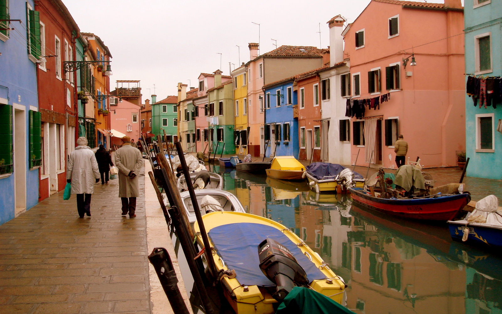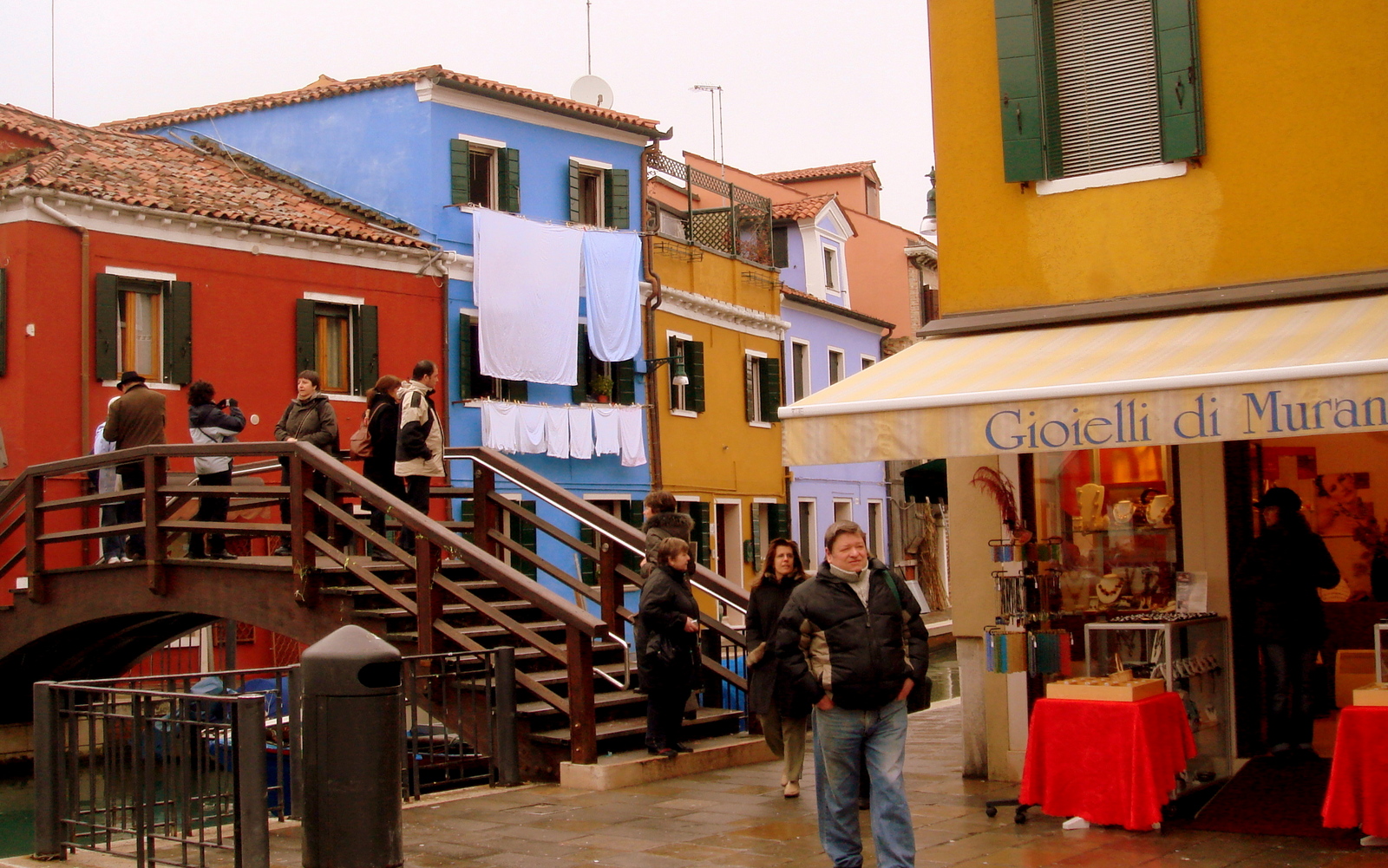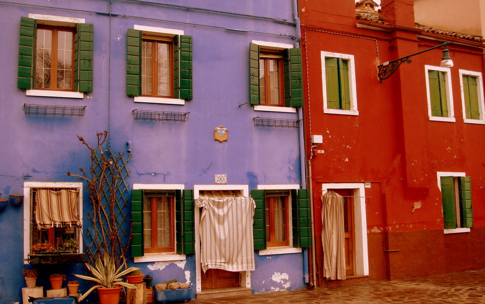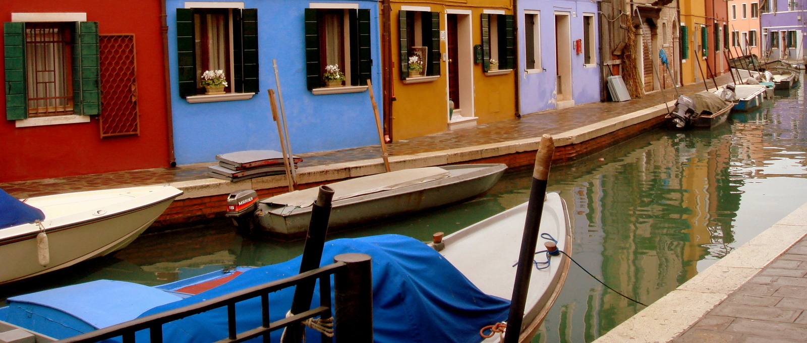 C’est lors de notre 1er carnaval que nous avons décidé de quitter momentanément nos costumés de la place Saint Marc pour aller la visiter et nous n’avons pas regretté. Les couleurs vives des maisons peintes de chaque côté du canal donnent un effet vraiment spectaculaire à cette petite île. On y apprendra qu’en fait, à l’origine, ce sont les pêcheurs qui peignaient leur maison avec une couleur différente de celle de leurs voisins afin de pouvoir la reconnaître dans la brume (très fréquente et particulièrement dense l’hiver…). Cette tradition est restée et les habitants ont encore aujourd’hui, l’obligation de repeindre leur maison une fois par an de la même couleur !!!