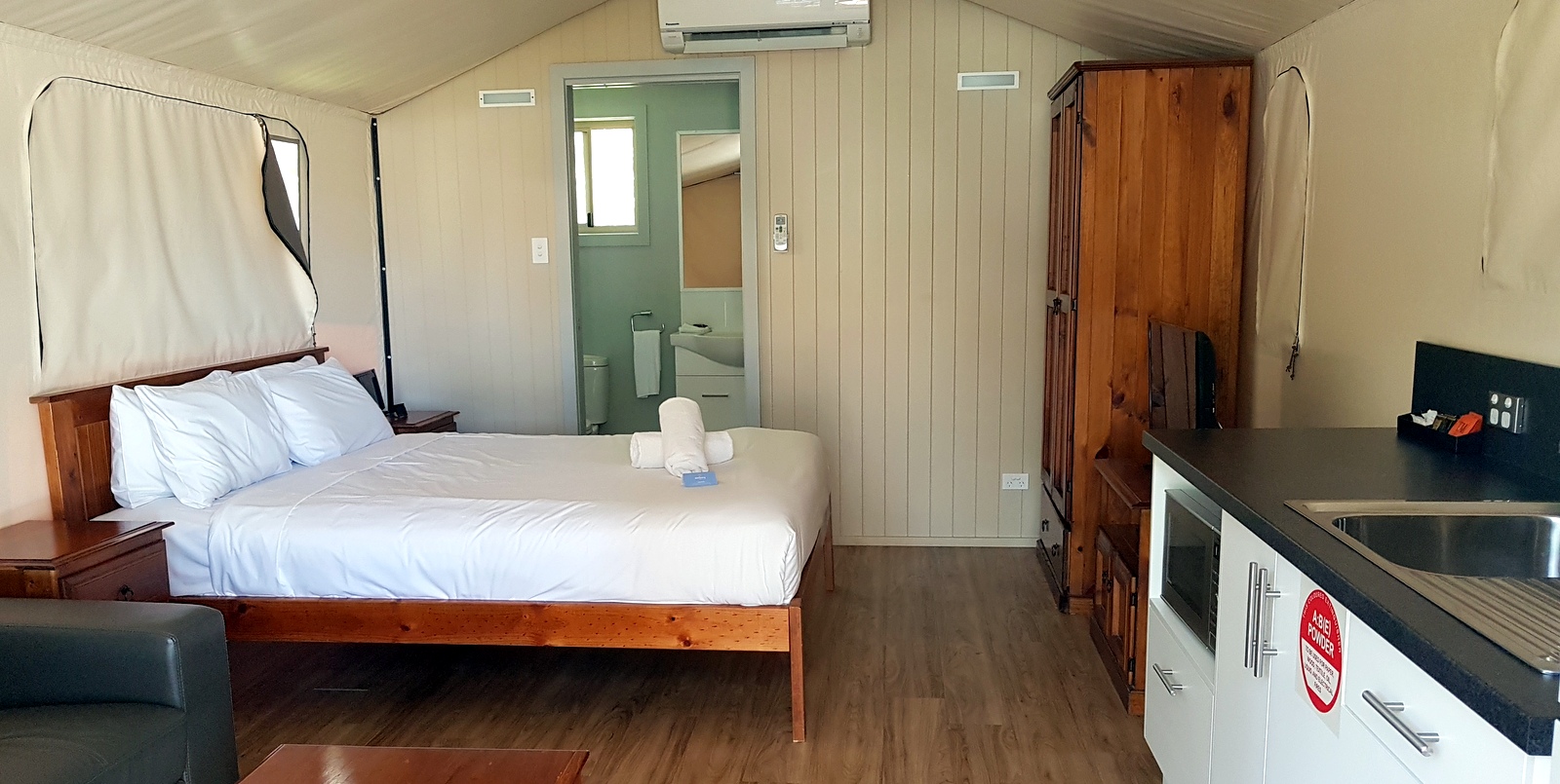 On s’est donc retrouvé sans hébergement au dernier moment !!! Les auberges de jeunesse, citées plus haut, étant toutes complètes, on a finalement logé dans un centre de vacances à l’entrée de la ville, le DISCOVERY PARK BYRON BAY, 399 Ewingsdale Road, Byron Bay dans une tente safari pour laquelle on avait trouvé une excellente promotion (par rapport au prix régulier) à 140 AU$ (86€) la nuit.