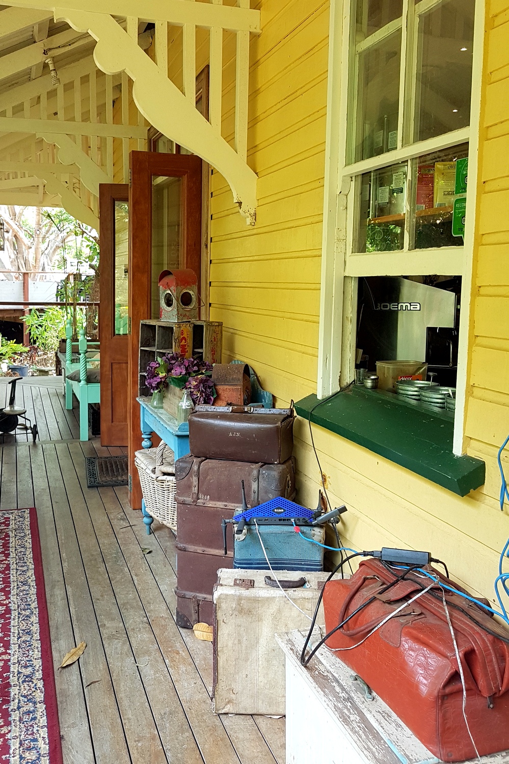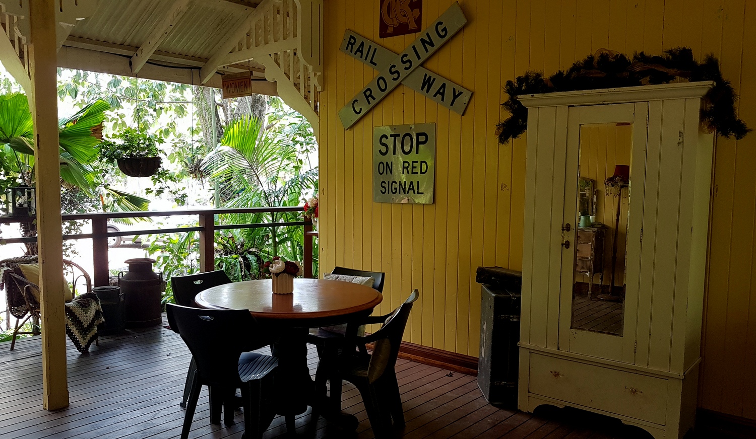 Puisqu’on doit changer nos plans, on va s’arrêter déjeuner à THE OLD STATION TEAHOUSE où on avait l’intention de manger le lendemain en repartant… puisque ce restaurant est sur la route qui mène à Cape Hillsborough (4 kms avant)!
