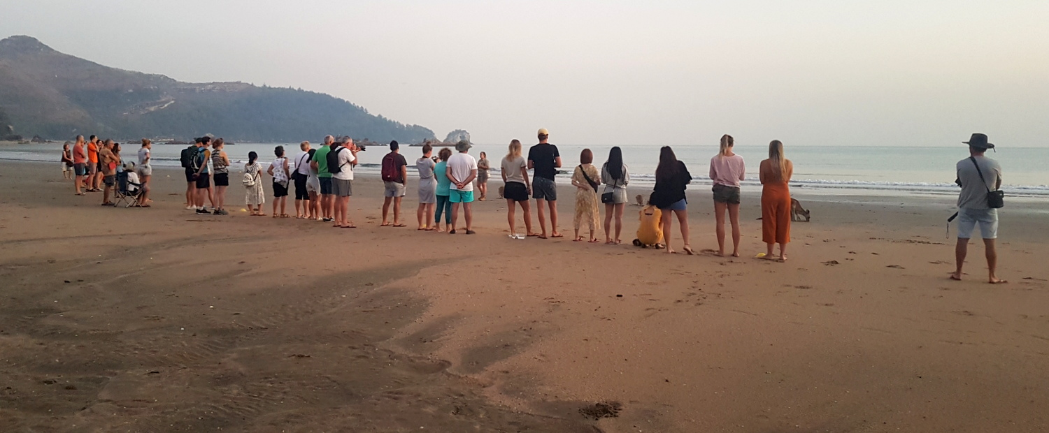 Il faut se lever tôt, très tôt pour être sur la plage avant le lever de soleil, c’est pourquoi il est préférable de passer la (courte!) nuit au resort. On nous avait prévenus que les kangourous arrivaient dès 4h50, on a donc mis le réveil à 4h20, le temps de se prendre un café pour avoir les « yeux en face des trous »… J’avoue que ça pique un peu si on est déjà recalé du décalage horaire !!!