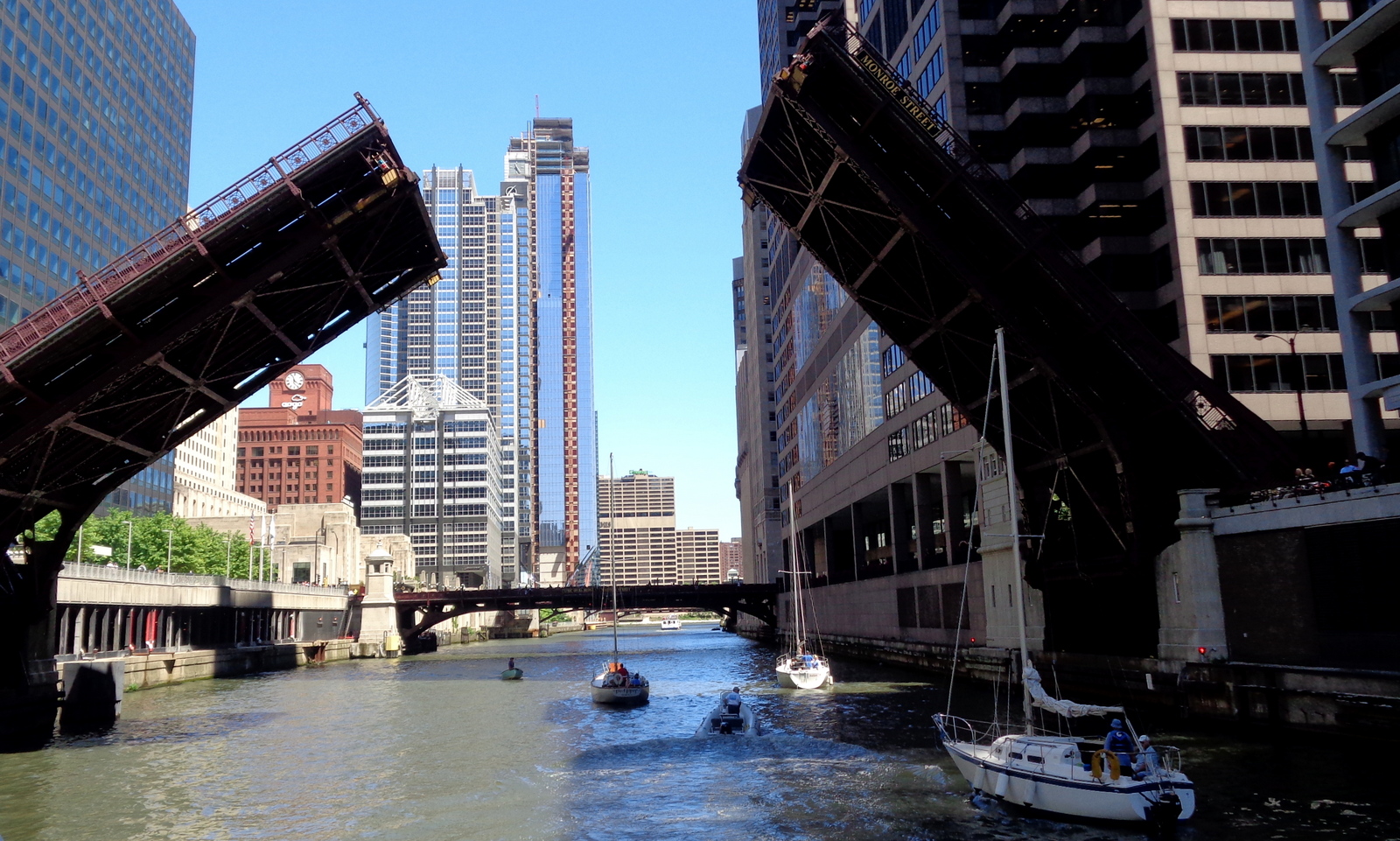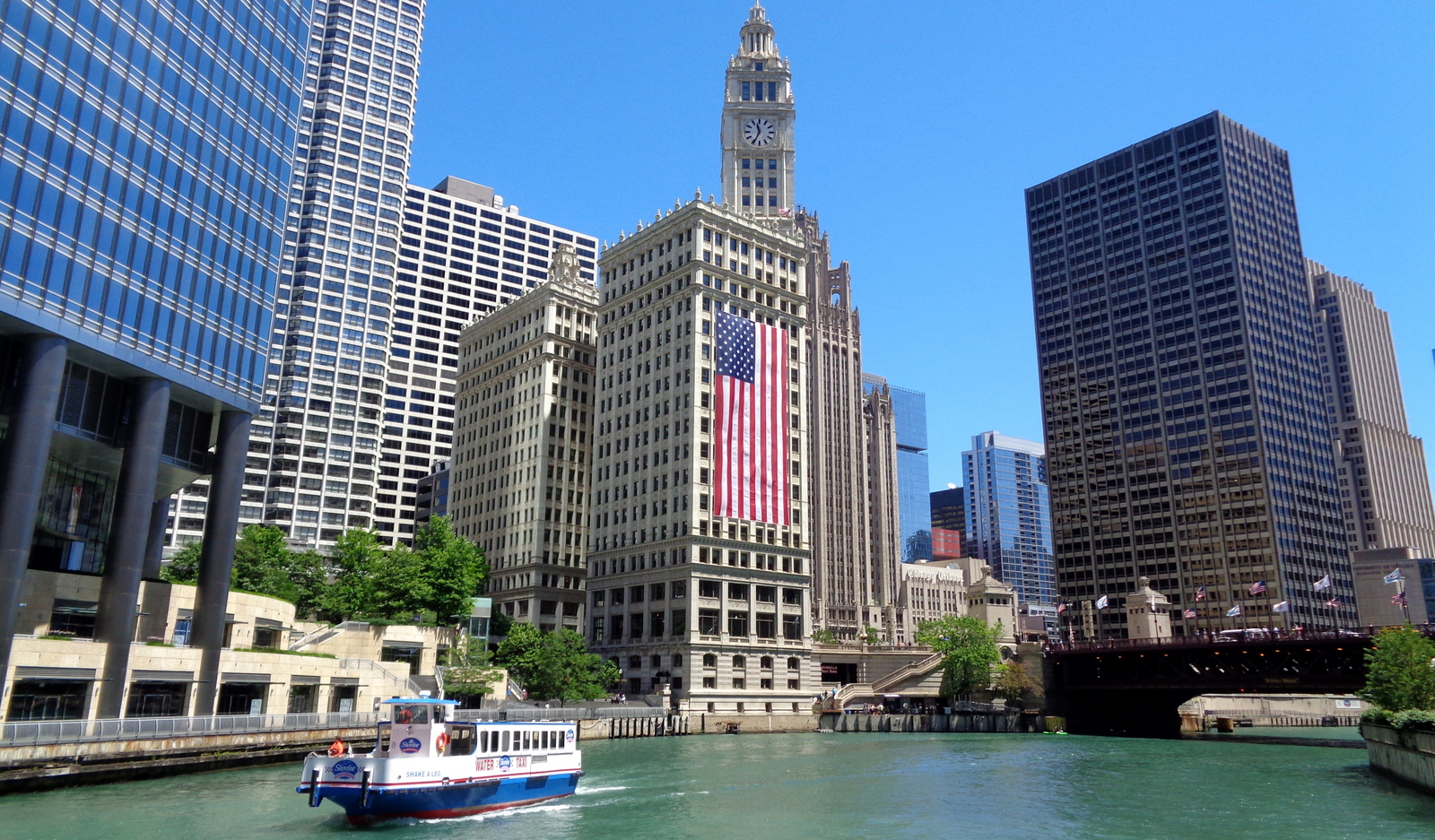 - c’était en été, une journée chaude et ensoleillée. C’est important à préciser parce que Chicago n’étant séparé du Canada que par le lac qui n’offre aucun obstacle aux vents glacials du nord, voire même les renforce, les hivers sont plutôt rigoureux et le froid rigoureux dure longtemps (de novembre à mars). D’ailleurs, Le lac Michigan gèle partiellement chaque hiver. J’imagine donc qu’une balade en bateau en dehors de mai à septembre doit être un vrai supplice !!! A moins que ce ne soit la canicule du siècle, il vaut mieux ne pas oublier une petite laine…