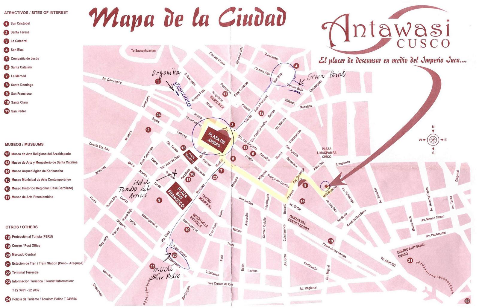 Pour aider Jolanda, originaire des Pays-Bas et fondatrice de la Niños Unidos Peruanos Foundation, on peut loger dans un de ses 2 hôtels. L’argent récolté permettra de nourrir et soigner quelques 600 enfants de Cuzco et alentours dont la fondation s’occupe. Les chambres ne portent pas de numéros mais les noms de ces enfants !!! Environ 55$ la double avec salle de bains privée.