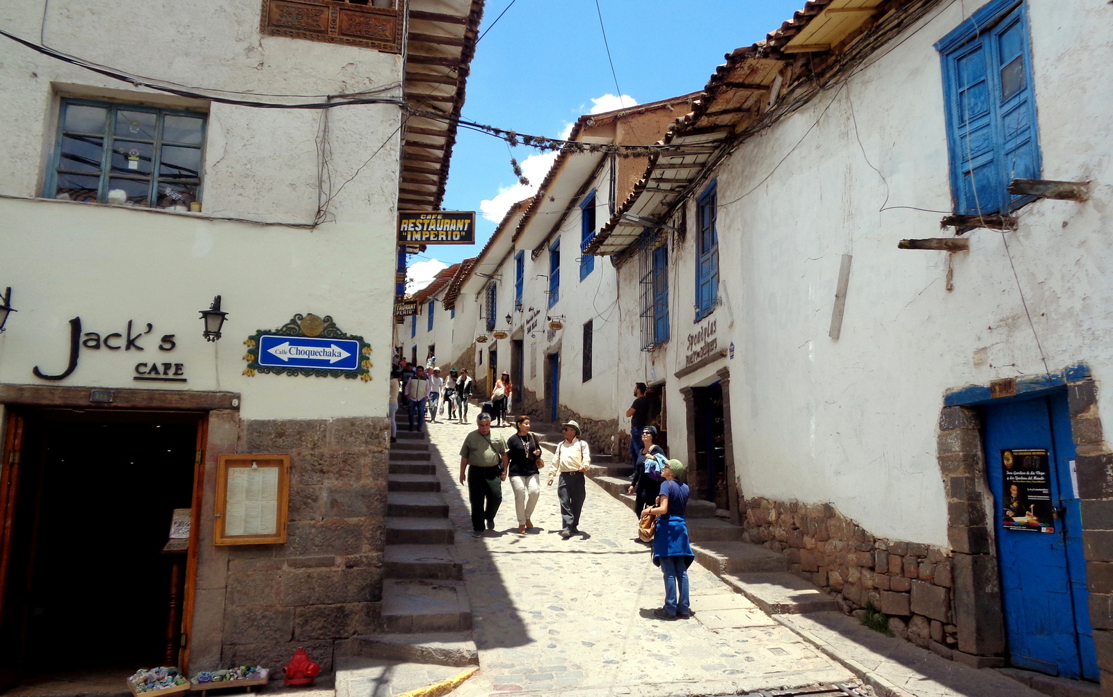 Nous avons une journée libre à CUZCO. Nous partons donc pour une balade à pied, le marché San Pedro et le vieux Cusco, la Plaza de Armas, la Cathédrale, le temple du soleil, le quartier San Blas et ses vestiges Inca (entre autres, pierre à 12 angles). Pour aller dans le quartier branché, mon préféré: prendre la ruelle à droite de la cathédrale. Aller tout droit jusqu’à l’église San Blas (attention ça grimpe!), prendre à droite les escaliers de la fontaine puis tourner à droite…