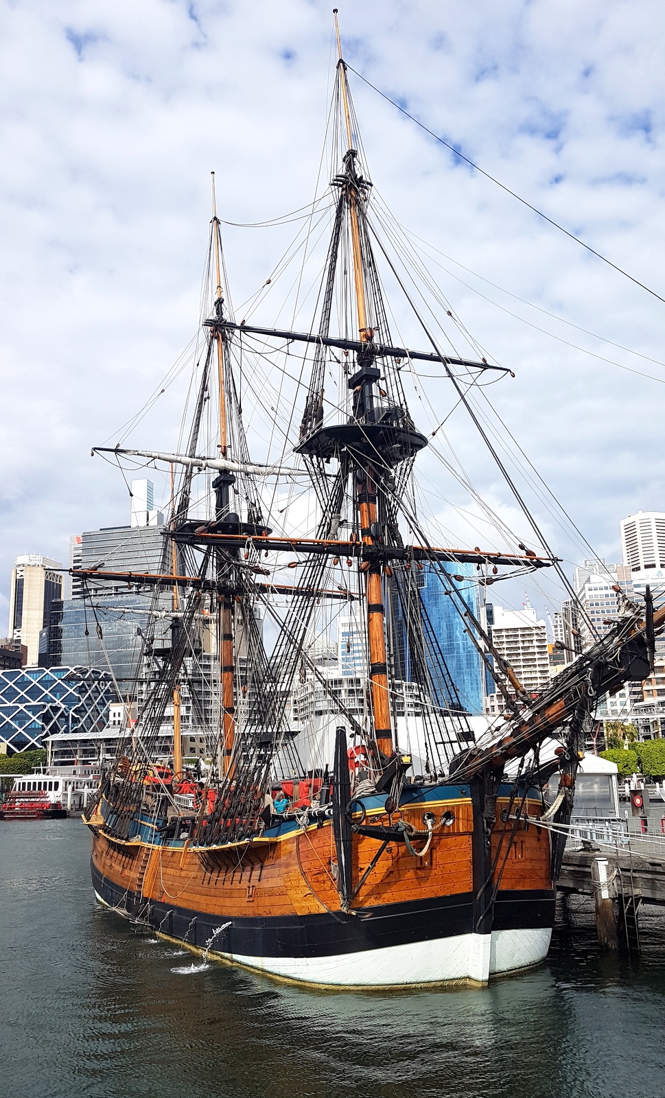 Même si on n’est pas très concerné au départ par la marine, la splendide réplique de l’ENDEAVOUR qui trône dans la baie attire l’œil dès l’arrivée sur Darling Harbour !!!