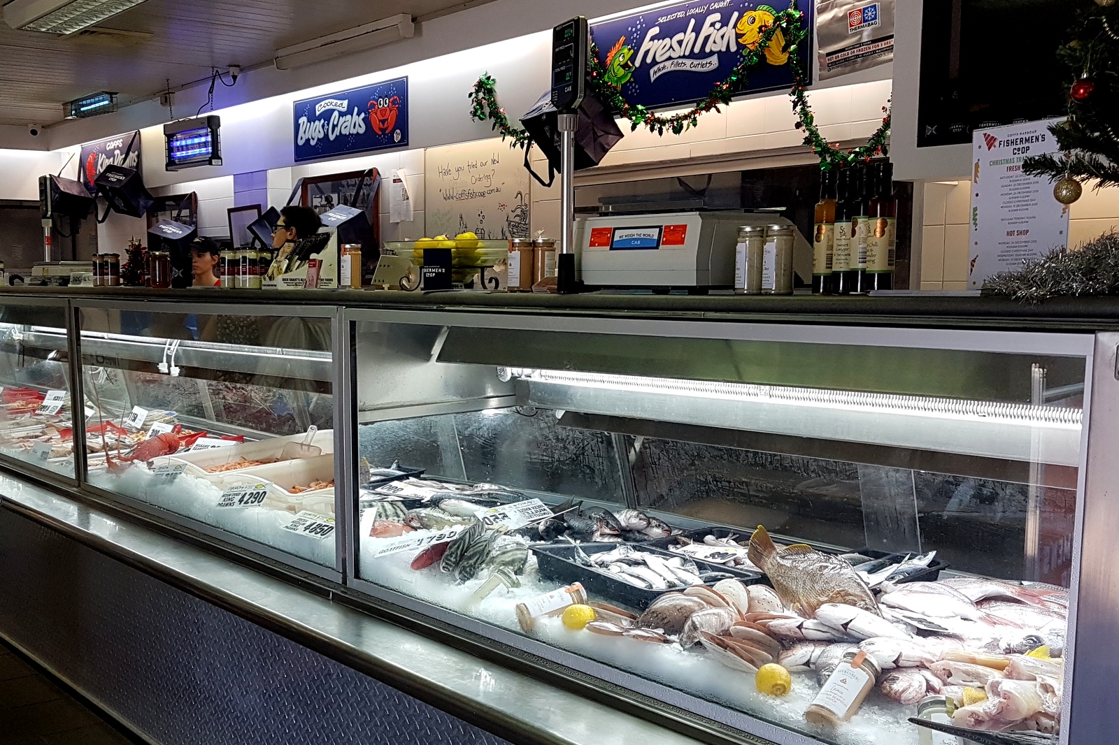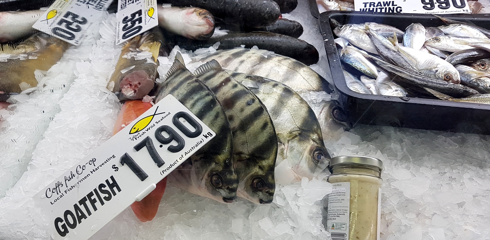 Sur conseil de la vendeuse, on prend le seafood basket à 30 AU$ (18,50€) avec des filets de barramundi. J’aurais bien essayé le Flathead (un poisson inconnu qu’on découvrira plus tard dans la journée…) mais on nous le déconseille car plein d’arêtes ou le goatfish qui n’est malheureusement disponible qu’à la vente !!!