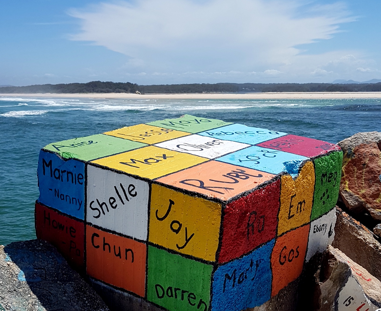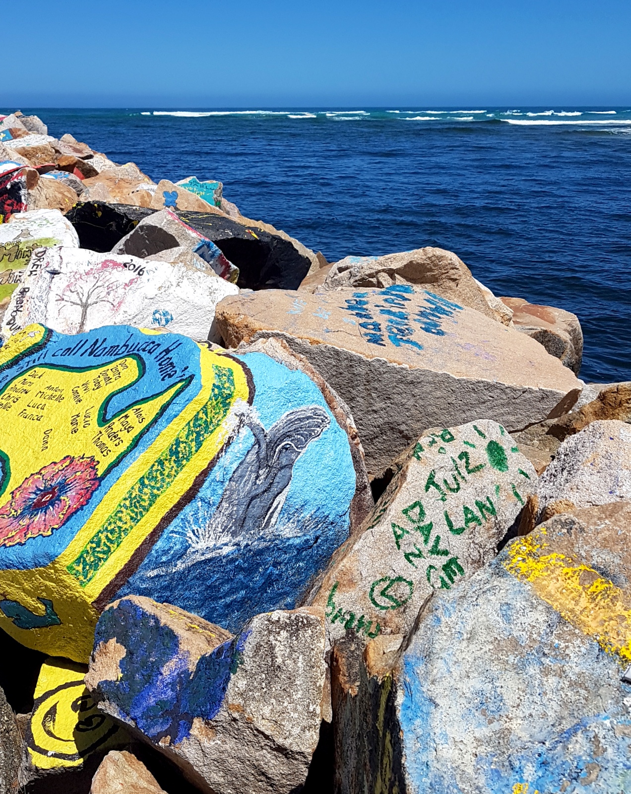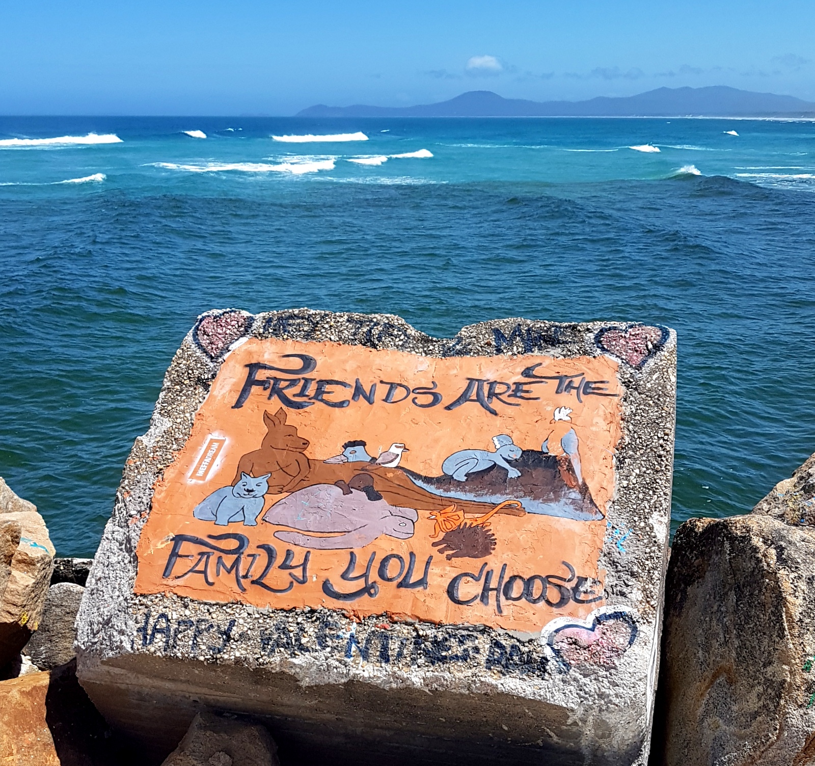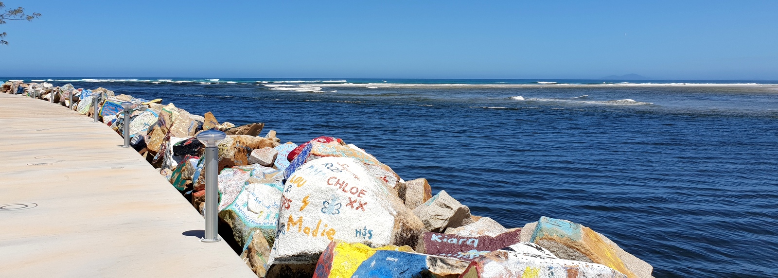 Ce sont des centaines de rochers peints qui longent la jetée de l’embouchure de la Nambucca River. Remerciement, hommage, souvenir de vacances ou juste un délire artistique… chacun est libre de s’exprimer et de laisser sa trace et son inspiration sur un de ces nombreux rochers. Ne vous gênez surtout pas pour laisser la votre, à condition d’apporter le matériel et de trouver un rocher disponible le long de ces 500m de jetée !!!