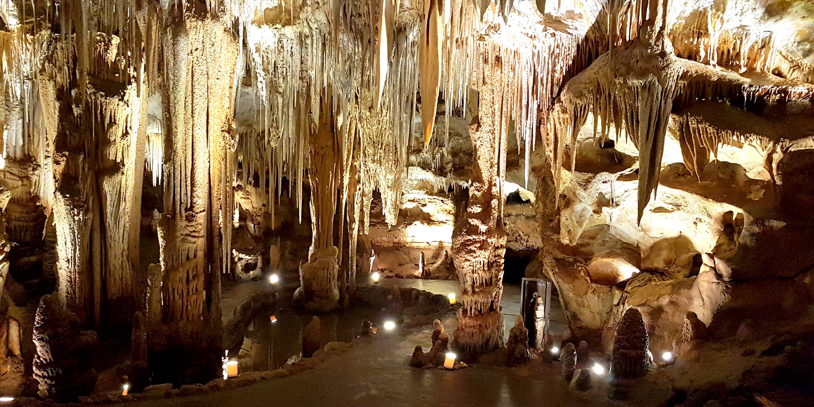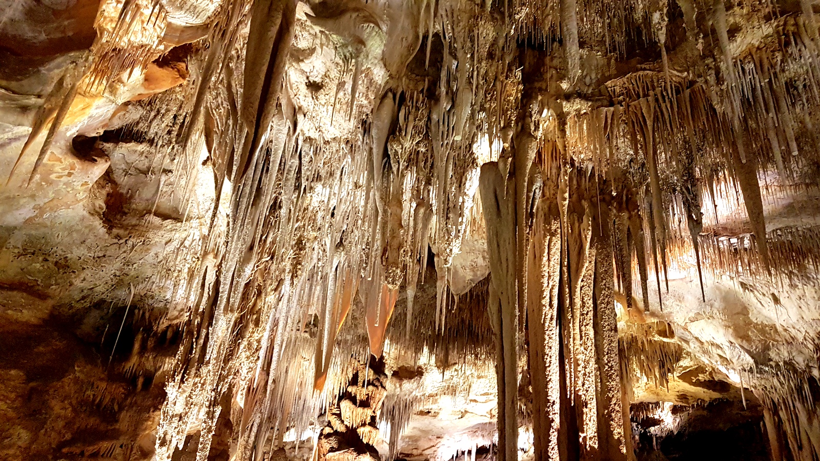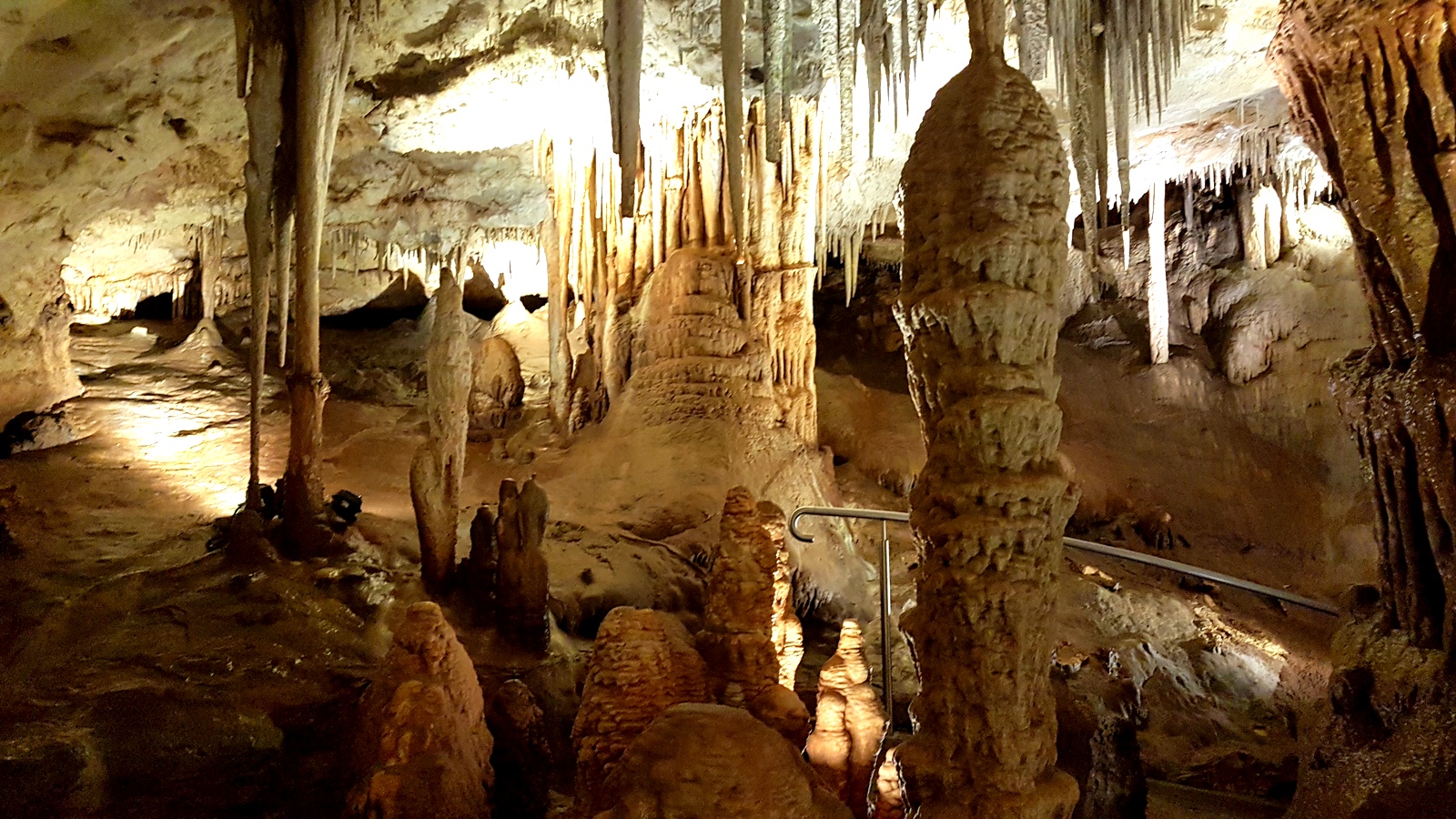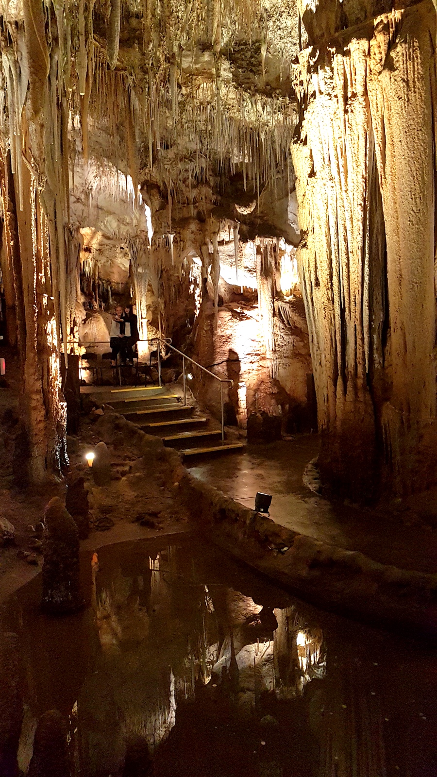 C’est une des grottes les plus visitées en Australie. Beaucoup plus petite que celles de Naracoorte, elle ne mesure qu’une trentaine de mètres de large sur 8 m de hauteur. Elle est, cependant, considérée comme une des plus belles! Ses innombrables stalagmites, stalactites, colonnes qui brillent et se reflètent dans la petite étendue d’eau lui donnent un peu l’air de la caverne aux merveilles d’Aladdin!