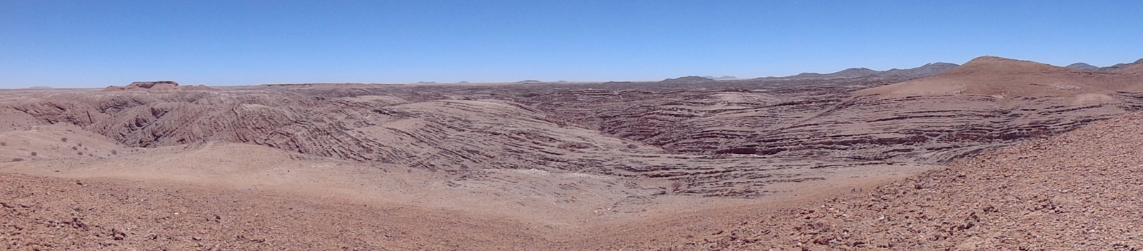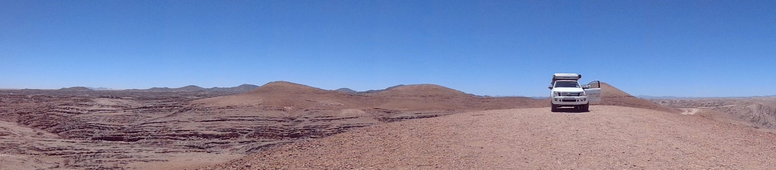 La route est fantastique, on passe au milieu de formations géologiques étonnantes. Elle est considérée comme l’une des plus belles routes du monde mais aussi une des plus dangereuses. On longe le canyon Kuiseb en traversant le parc du Namib-Naukluf.
